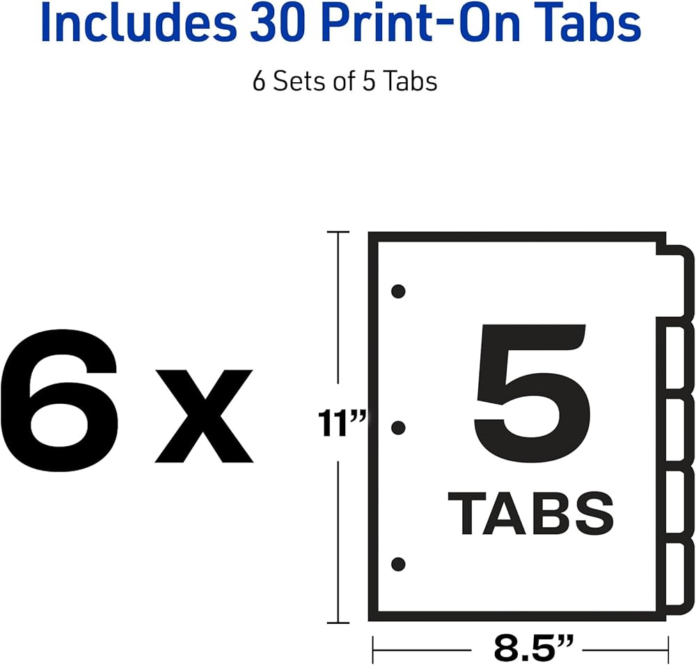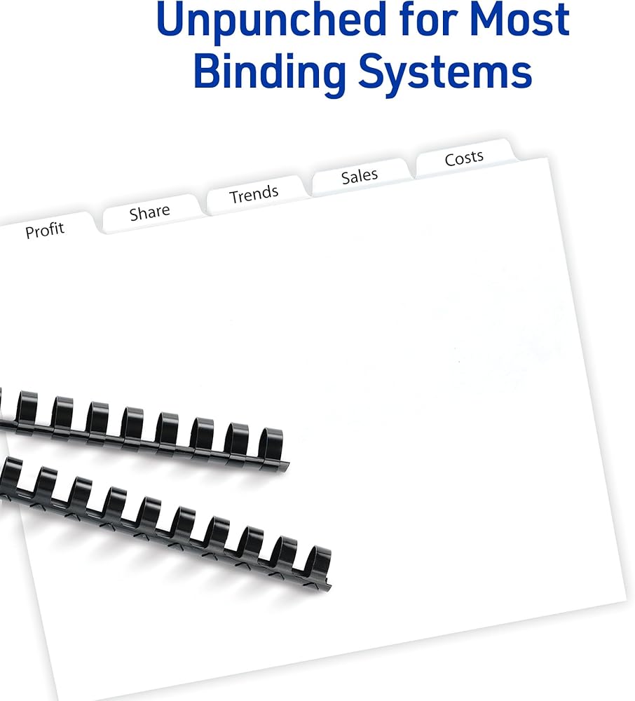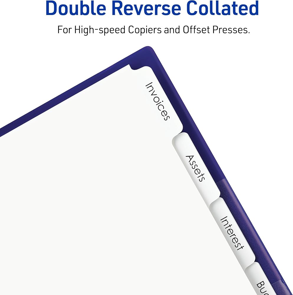 Avery Double Reverse Collated Tab Dividers, Unpunched for Most Binding Systems, Printable with High-Speed Copiers and Offset Presses, White, 5 Tabs per Set (30 Sets of 20405)
