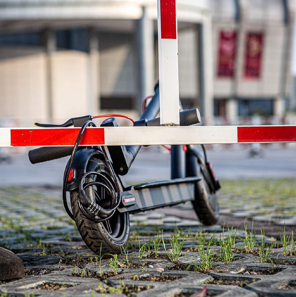 WIDE RANGE OF APPLICATIONS: This cable lock is small enough to fit through the spokes of most scooters & bikes. Suitable for use on electric scooters Xiaomi Mijia M365, Ninebot Segway ES, bicycles, ladders, lawn mowers and sports equipment, as well as most models of electric scooters and pedal scooters.