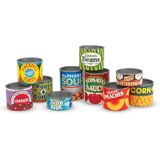 Stock a pretend pantry with this collection of lidded cardboard play-food cans, and you'll have all the ingredients for colorful, imaginative grocery-store play. Open and close, fill and stack, sort and match the canned food toys—this set has a pretend-play flavor for every taste The cans in this play-food set have sturdy and colorful cardboard sides. The lids are made from high-quality plastic and pop on and off with ease. The Let's Play House Grocery Cans pretend play set includes 10 cans in a variety of sizes and designs. The Melissa & Doug grocery cans set promotes sorting and grouping, color recognition, and awareness of different types of food. This grocery cans set makes a great gift for kids ages 3 and up. Add the Melissa & Doug Let's Play House Grocery Basket with Play Food set to round out the pretend play experience and give kids another engaging option for screen-free fun. For more than 30 years, Melissa & Doug has created beautifully designed imagination- and creativity-sparking products that NBC News called “the gold standard in early childhood play.” Today, Melissa & Doug is proudly partnering with the American Academy of Pediatrics to foster early brain development and help children build important life skills through play.