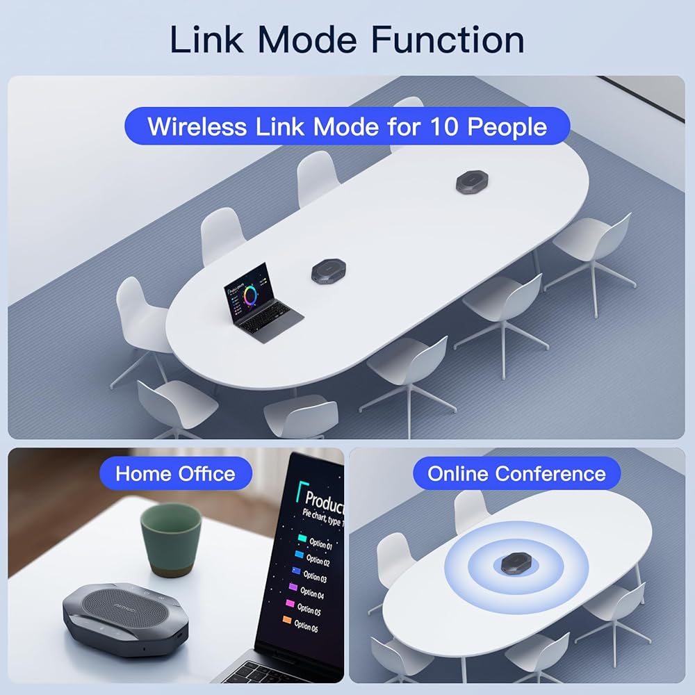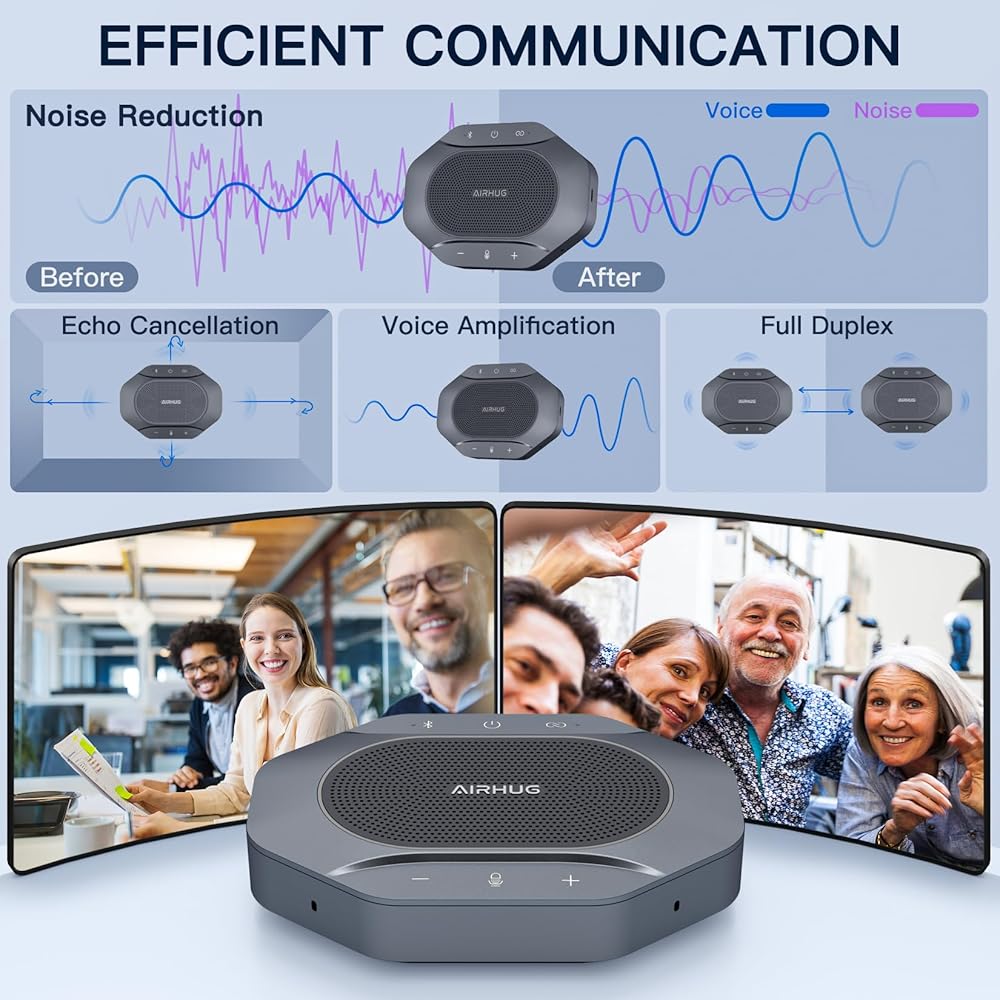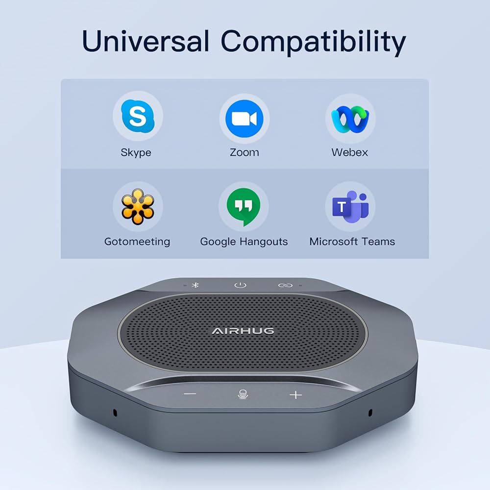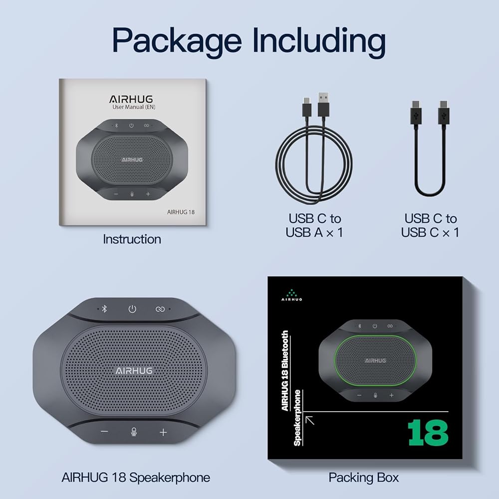 【Support Dual Speakeprhons Mode 】Whether you're using it alone or two conference speakers, AIRHUG 18 speakerphone linking mode is perfect for different meeting spaces. It delivers superb audio for collaborative conferences, making it easy for 10 attendees or more to hear louder voices in a large conference room. This AIRHUG18 speakerphone is definitely a great choice for office workers and elites in conference calls.