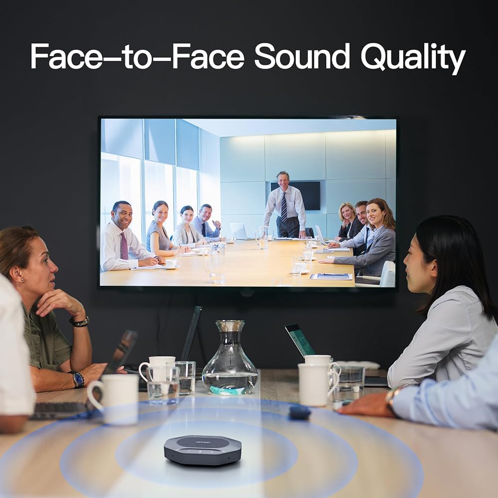【4 Mic Array】360° full range pick-up voice, 4 mics capture voices within 9ft. The 48KHz sampling rate ensures that the speakerphone picks up your voice with unparalleled clarity. The microphone's advanced noise-canceling algorithm filters out environmental noise, such as keyboard clicks, allowing you to immerse yourself in a meeting environment and hear real human voices.