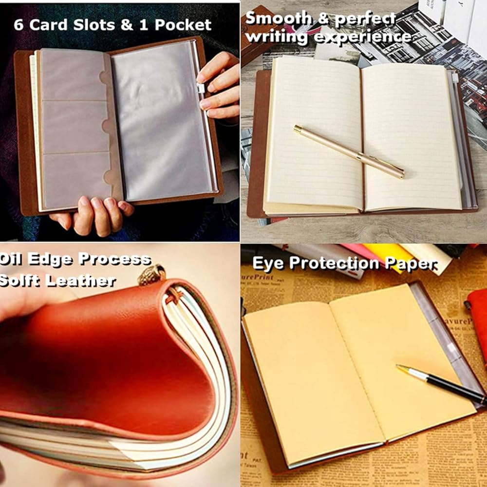 💞【Reliable Quality】Durable PU leather cover + 140 pages can be filled with acid-free paper + extra phone slot and card slot. Good for journaling, handbook, sketching, drawing, collecting stickers/photos or stamps