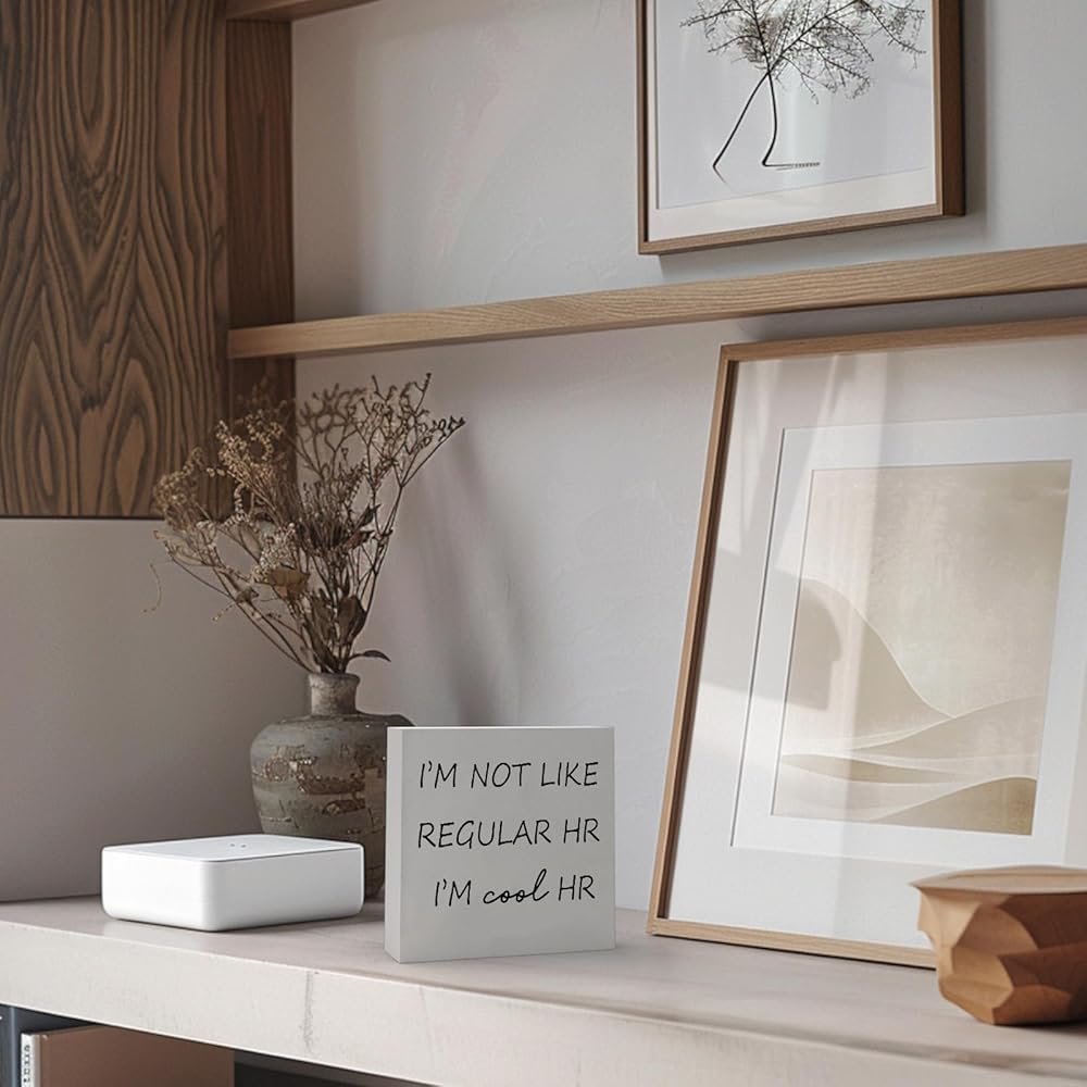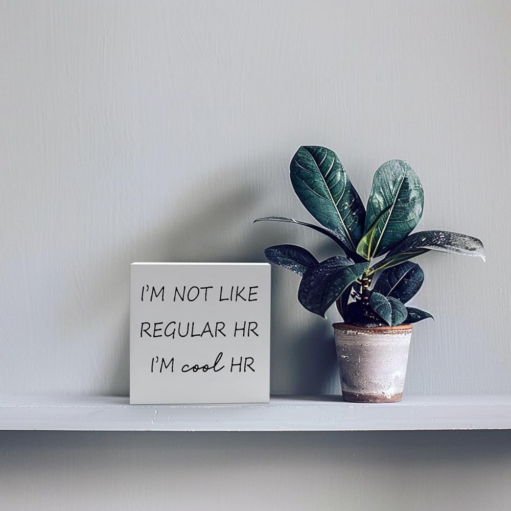 Funny HR Wooden Sign Desk I'm Not Like Regular HR I'm Cool HR 5x5 Inch Rustic Wood Office Decor Sign Humorous Quote Plaque for Workplace Cubicle Shelf Table Small HR Sign for Coworker or Boss Office