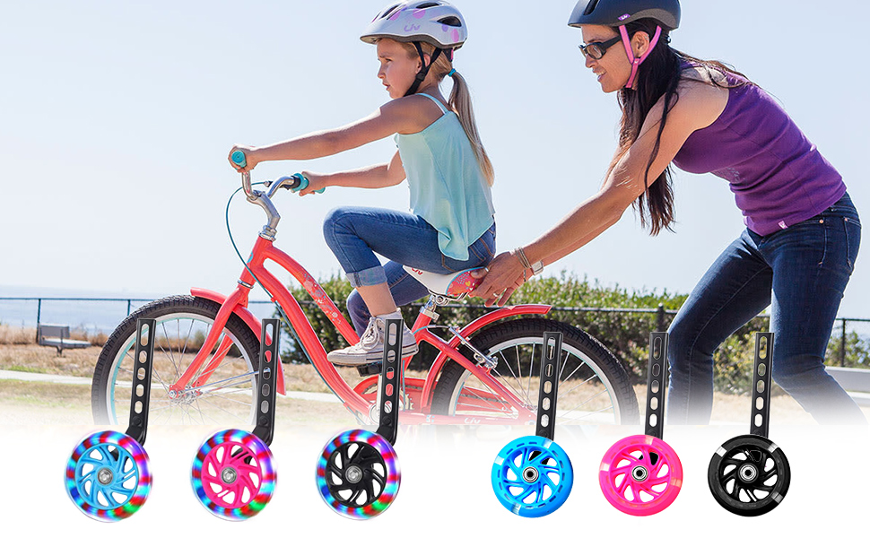 QKTYB 1 Pair Bike Training Wheels Flash Mute Kids' Bicycle Training Wheels Children Bike Stabilizers Support Wheels Universal Bike Training Wheels for Kids Bike 12 14 16 18 20 Inch (Pink)