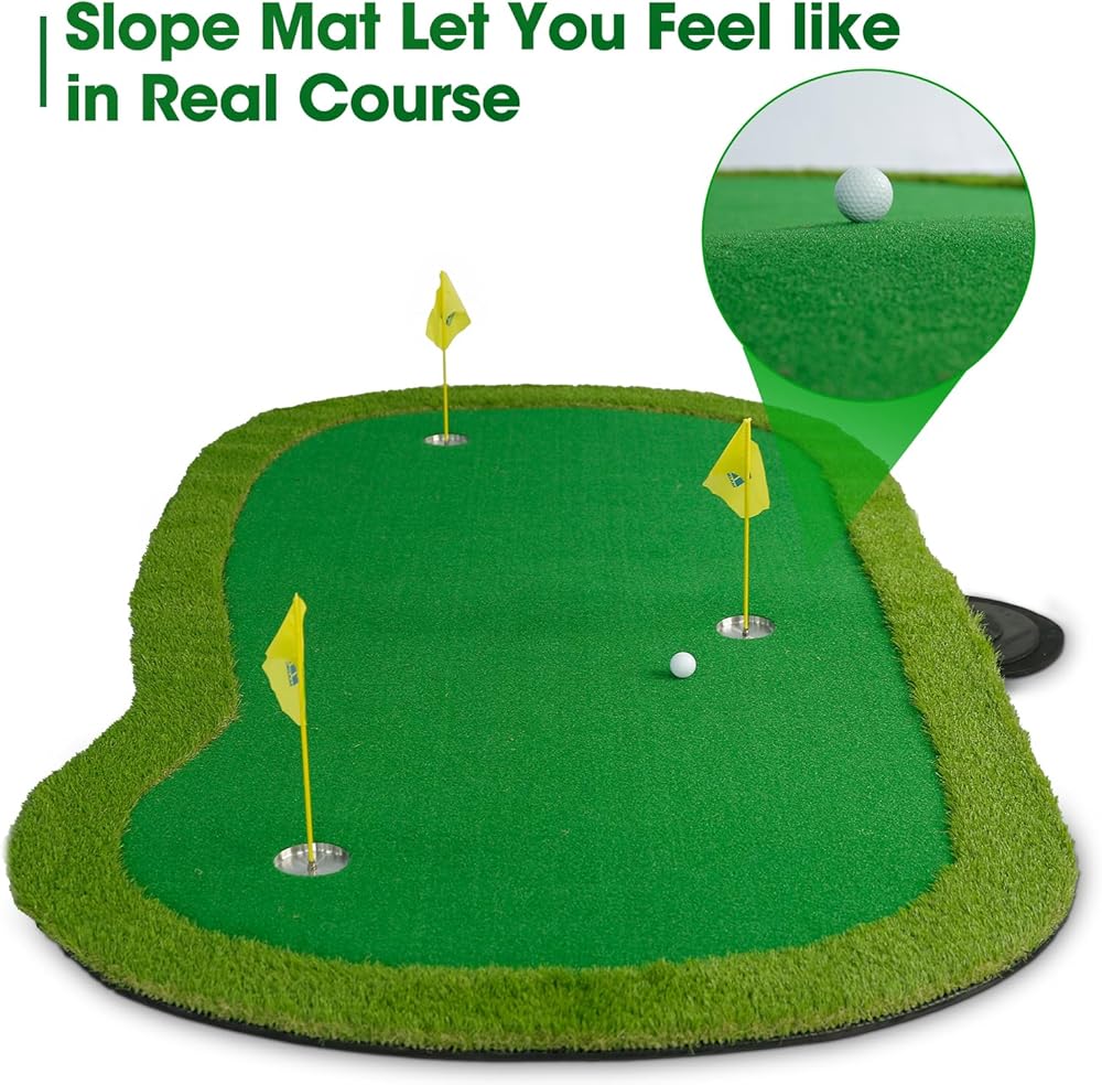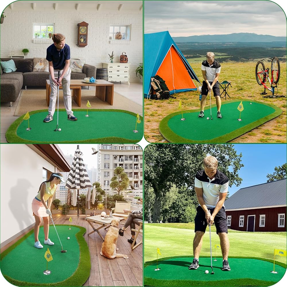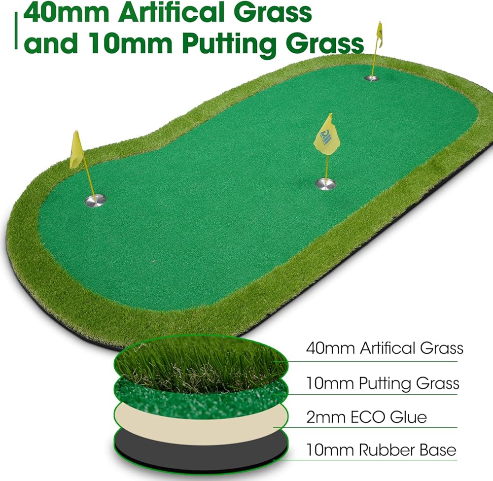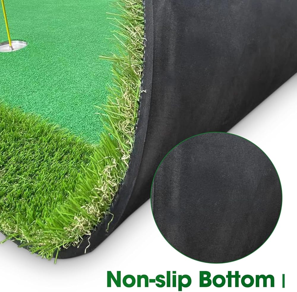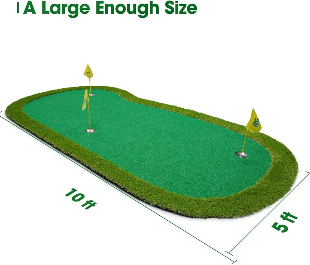 Enough size and weight to make it non-slip and fixed: the size of this putting green is 5*10ft, it's relatively large, and there is enough weight, the bottom is also non-slip, so that you can not be distracted by the movement of the green mat, you can concentrate on improving golf skills.