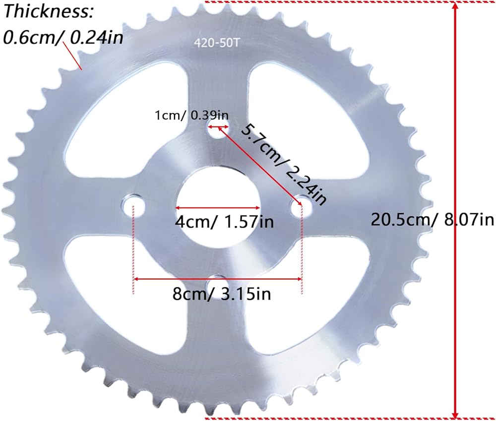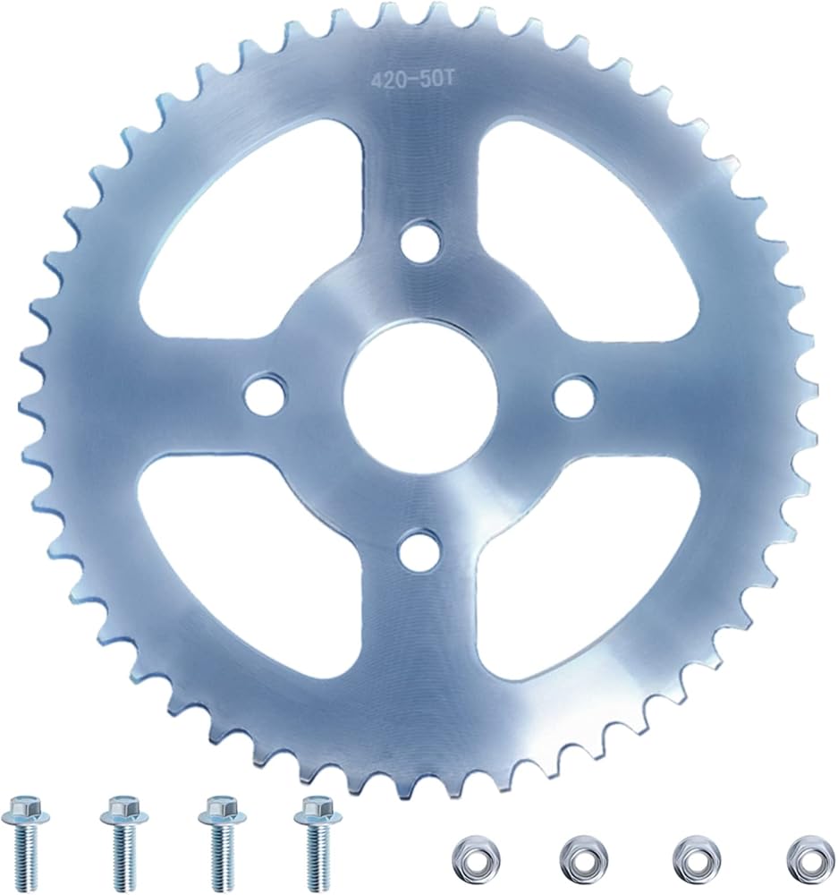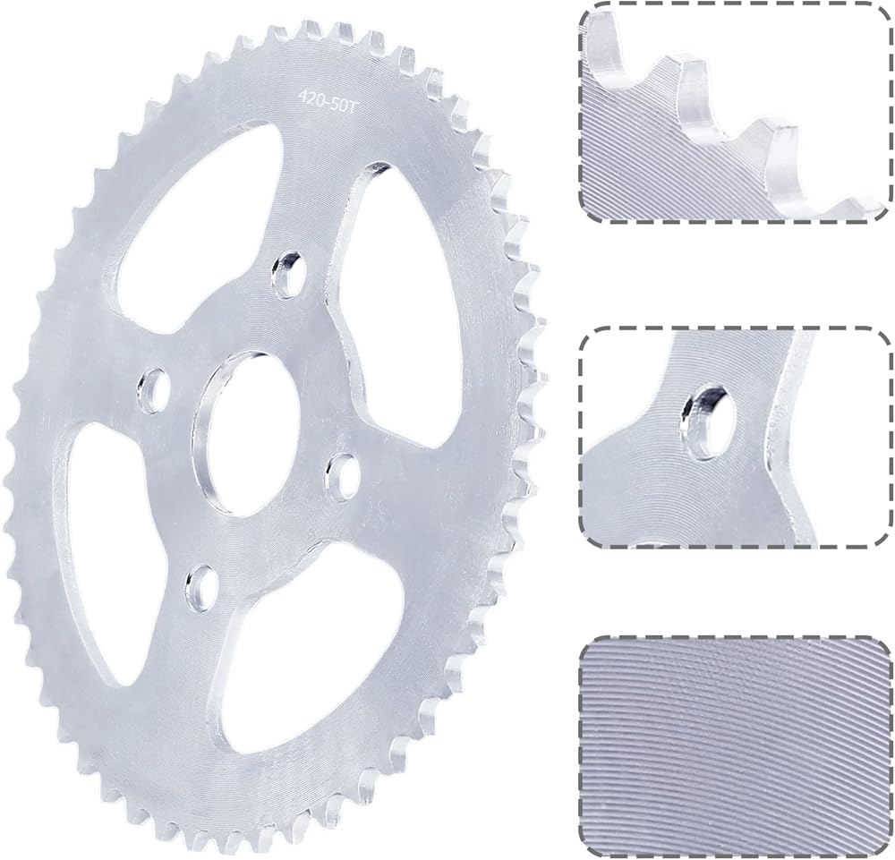 ⚙️【50T Rear Sprocket Cog】This Go Kart Sprocket designed with 50 Tooth, works with 420 Chain for Go Karts, Motorcycle and Mini Bikes.