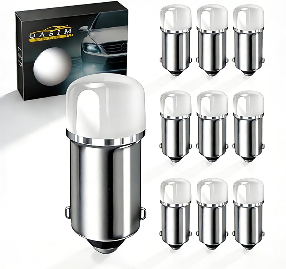 QasimLed Bayonet BA9 BA9S 53 57 1895 64111 T4W Super Stable and Bright Led Bulbs Exterior Marker Indicator Interior Reverse Side Corner Light White 12V DC 10pcs