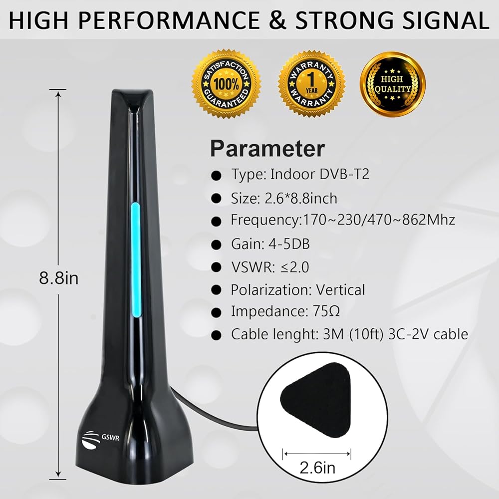 【Compact and small Design】The Digital TV Antenna has very compact and small design, makes it looks very nice, easy to move and save the space for your home as well, which is allow you hide it at any position position. NOTE: Always remember do re-scan for channels after moving the Antenna.