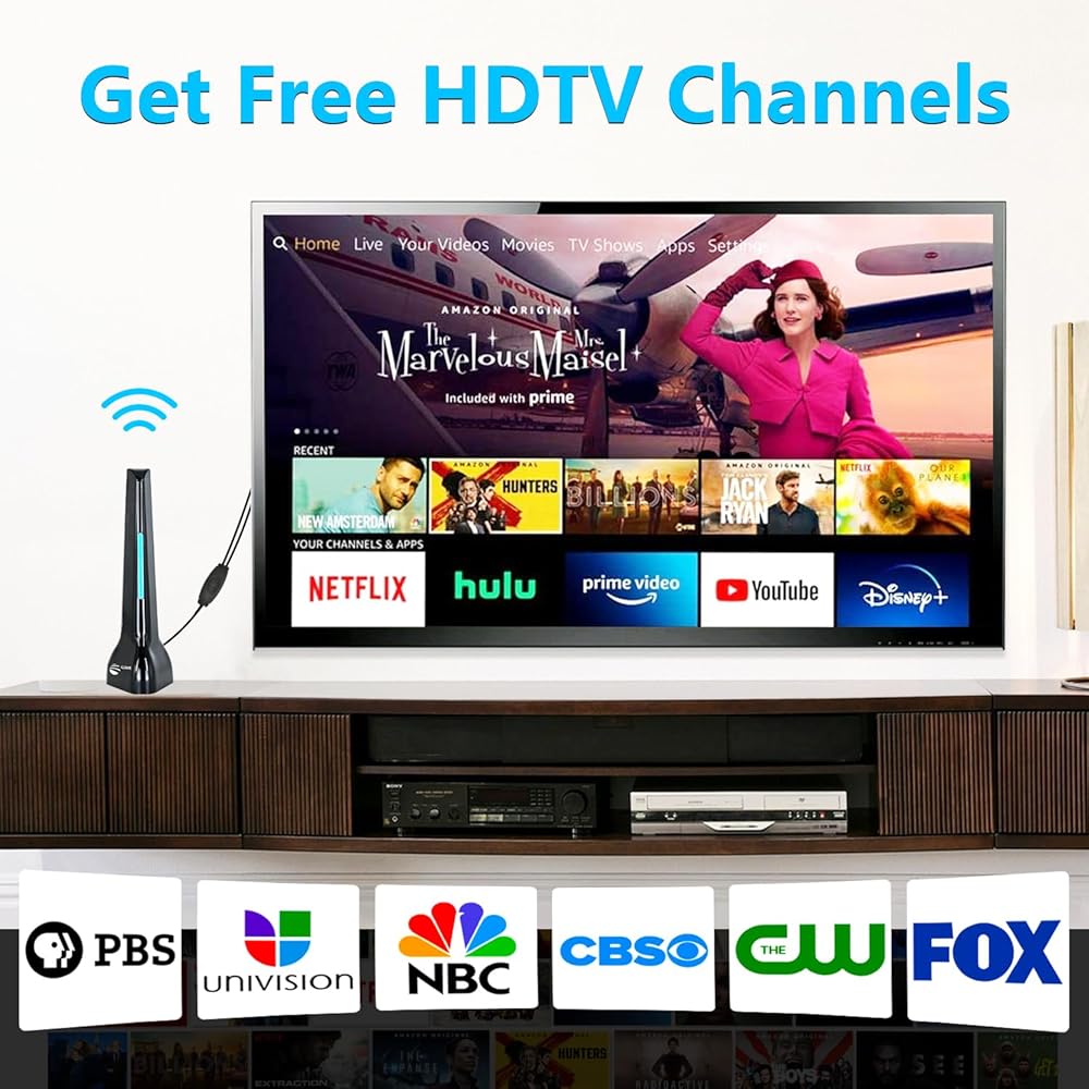 TV Antenna for Smart TV, Digital TV Antenna Amplified for HDTV, Long Range Reception for Indoor, 4K 1080P Antenna for Free Local Channels,Support VHF/UHF with 10FT Coax Cable