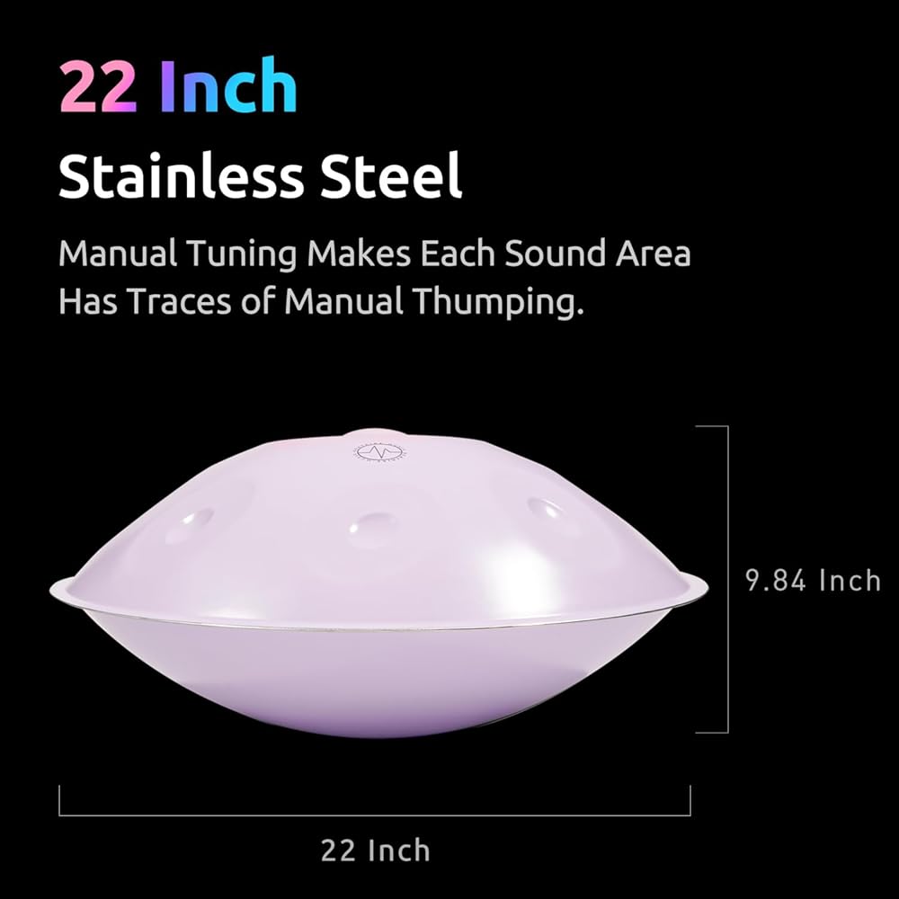 Stainless Steel Handpan Has Clear Powerful Almost Angelic Sound, Resulting with Bright and Soft Tone with Abundance of Sustain. All Notes Have Excellent Resonance Vibration.