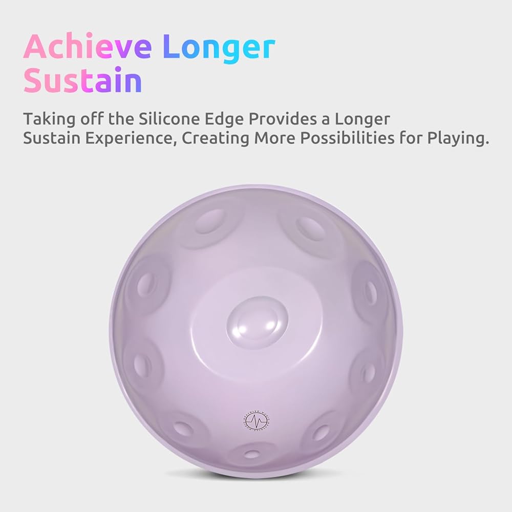 Silicone Edge Design Not Only Provides Protection for the Edge of Handpan, But Also Assists in Sound Absorption. Taking off the Silicone Edge Provides a Longer Sustain Experience, Creating More Possibilities for Playing.