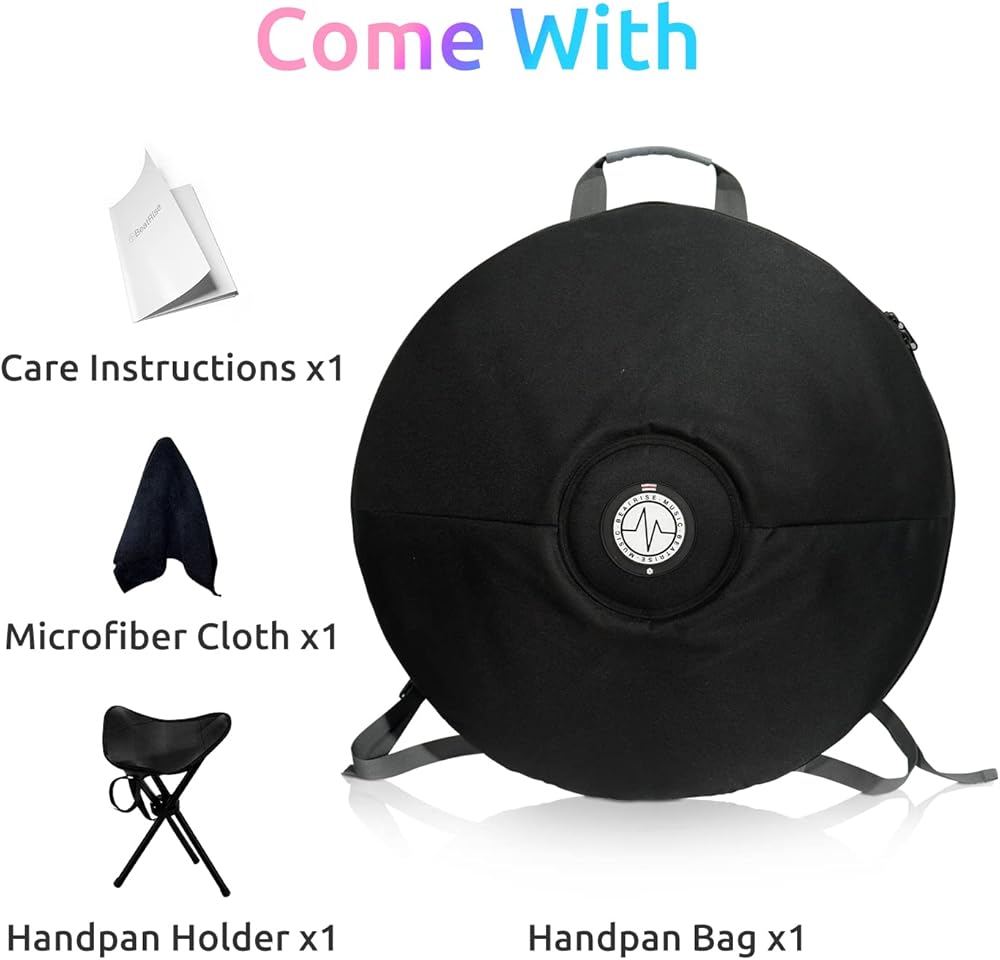 Handpan is a Perfect Gift for Music Lovers. Great for Personal Meditation, Yoga, Zen, Sound Healing, Stimulates Imagination and Creativity. It Can be Played by Anyone of Age, Anytime and Anywhere.