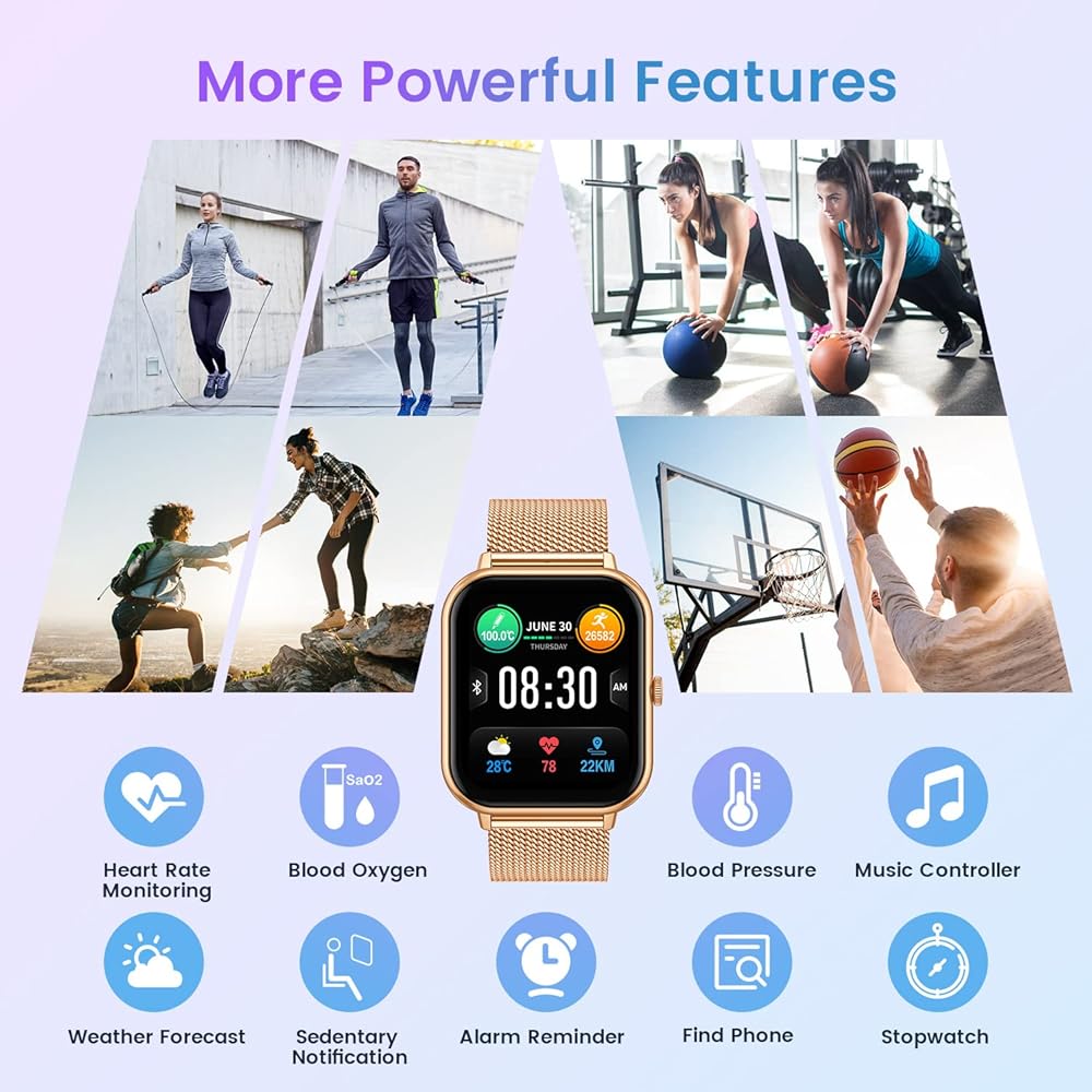 Answering/Making Call & AI Voice Assistant: Smart watch for women is equipped with HD speaker, advanced Bluetooth technology, after connecting to your phone via Bluetooth, you can directly use the smartwatches to answer or make calls. You will never miss any calls and messages during workout and riding. The smartwatch is equipped with an AI voice assistant. Click 'Voice Assistant' on the watch, then you can voice control the phone to make calls, search information, play music and enter any app.