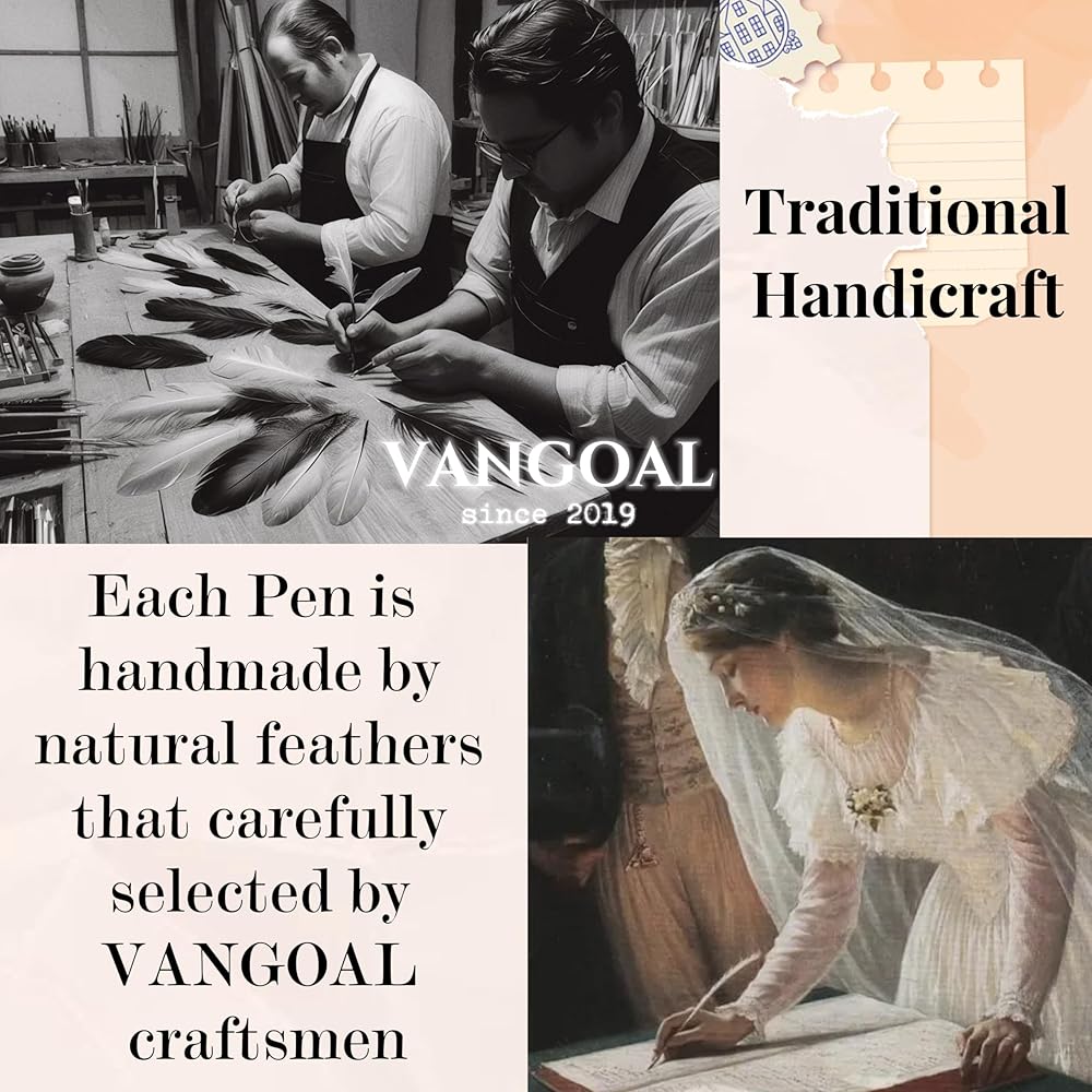 [ Made from Natural Feathers ] - The feather part of the pen is made of high-quality goose feathers (the green one is peacock feathers), which are hand-cut by our craftsmen to create a beautiful shape. The feathers are traditionally hardened and then dyed, retaining their natural texture and enhancing their beautiful luster.