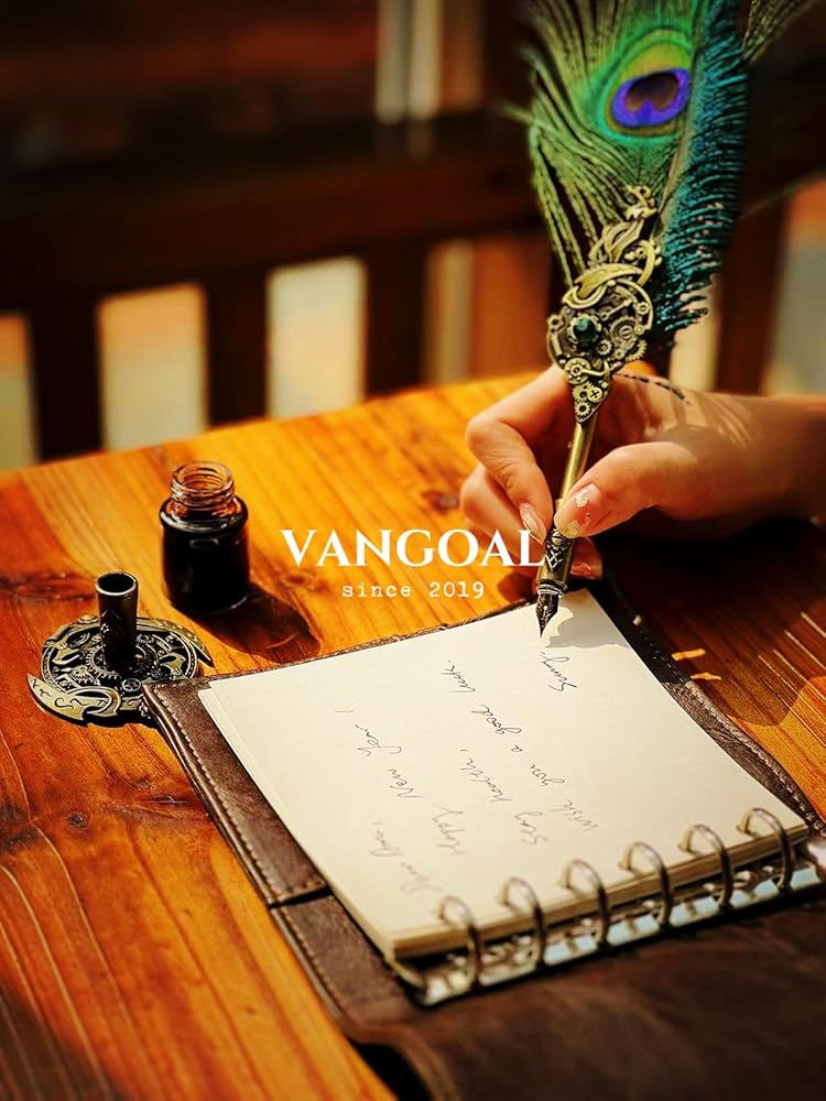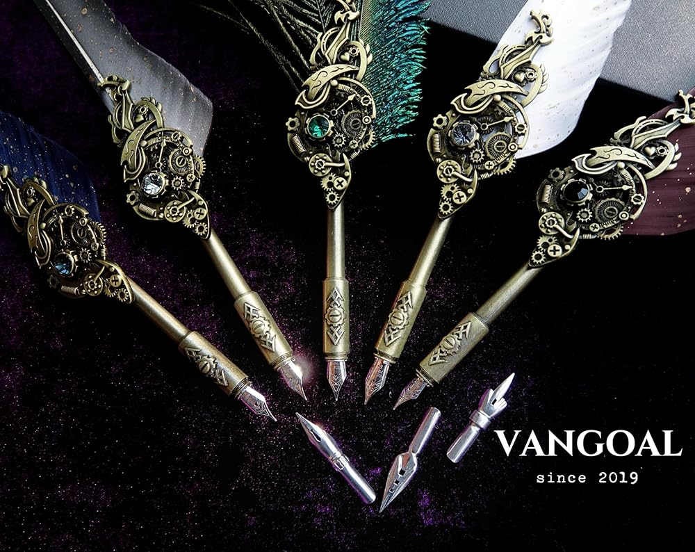 VANGOAL Steampunk Feather Pen and Ink Set with Gift Box, Vintage Quill Pen for Writing, Calligraphy Pen Set for Office Supplies, Birthday, Wedding, Christmas Gift (Blue)