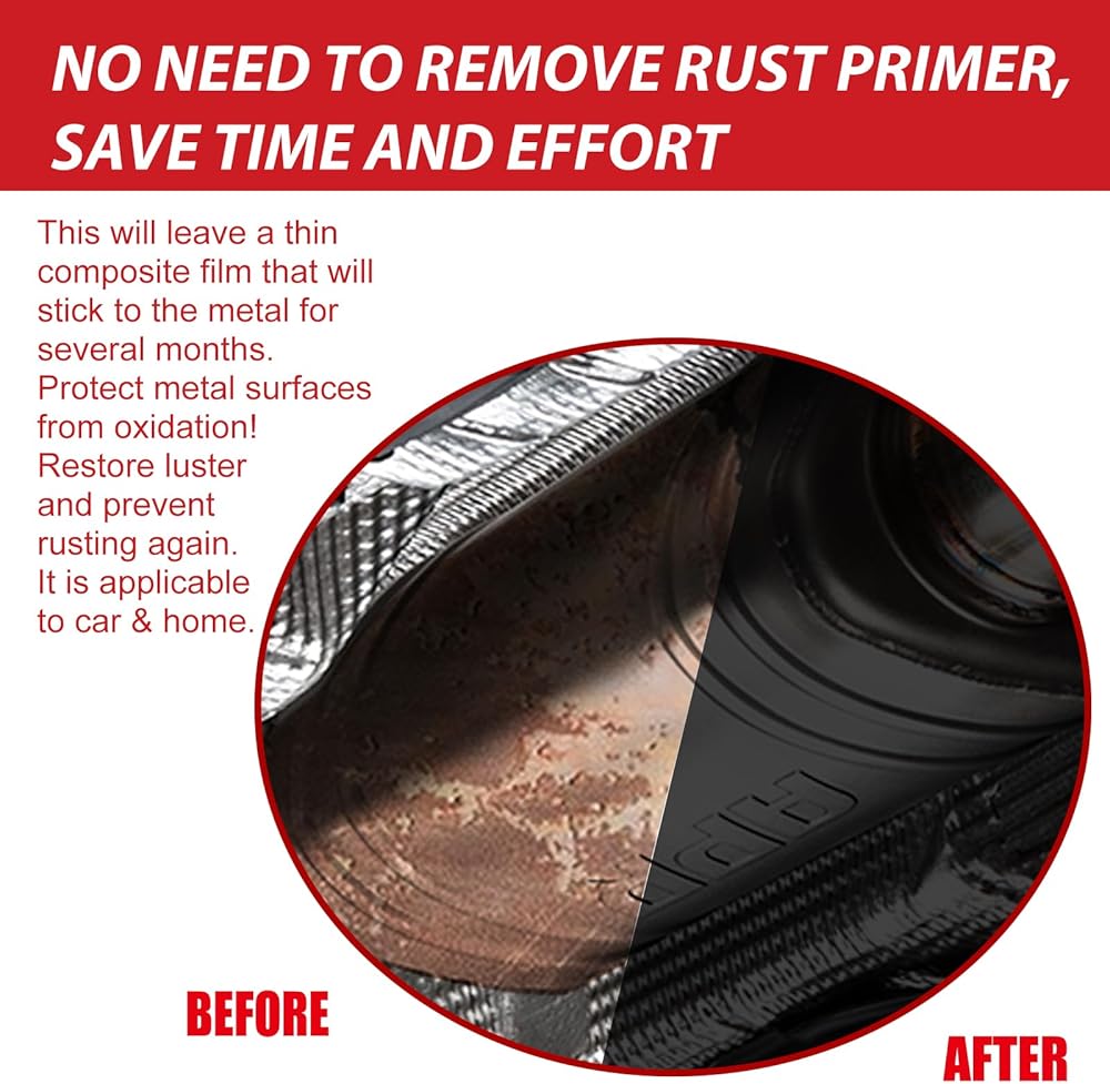 Easy to Use - With a simple wipe to clean off dust and water stains, our rust cleaner can be easily applied using the included brush. After just 20 minutes of drying time, it forms a durable protective film, eliminating the need for labor-intensive scraping, sandblasting, or grinding.