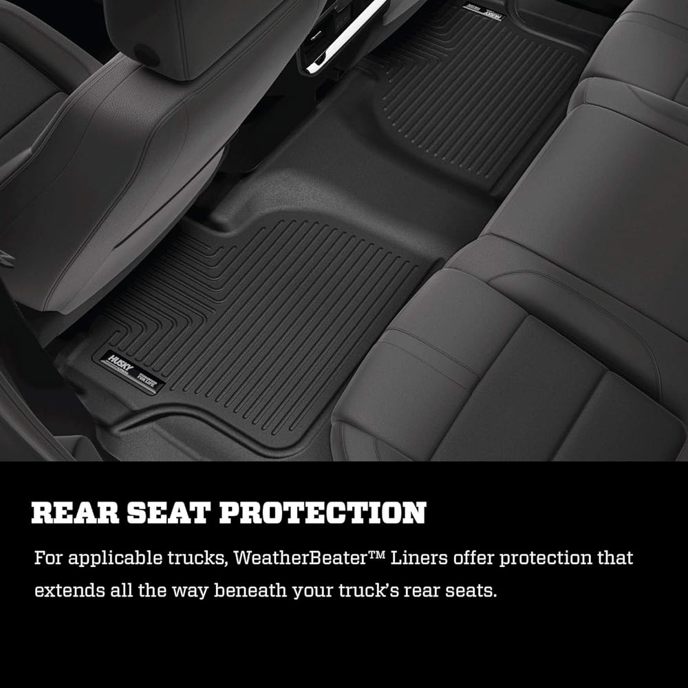 Husky Weatherbeater combines a laser-tight fit with legendary durability. The original all-weather liner's construction forms a no-slip zone with zero edge curl, while its StayPut Cleats keep it firmly anchored underfoot. Husky's indestructible liner material stands up to chemicals like gas, oil and battery acid, and stays tough and flexible in conditions from sub-zero to blistering hot. Its laser-scanned, FormFit Design gives your truck, van or SUV an ultra-clean look with easy cleanup to match—just yank it out, hose it down, and carry on. Husky's patented FormFit Edge creates a raised barrier along the door jam that keeps mud, snow, and spills contained, carpets unstained. It's unbeatable Husky protection for life, warrantied the same. Available in black, tan, and grey. Proudly made in the USA.