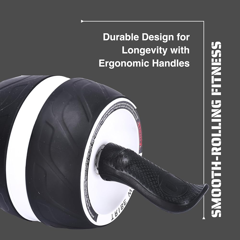 Tribe WOD Ab Roller Wheel - Ab Exercise Equipment - Core Muscles and The Abdominal Training Workout Equipment - Sculpts Abs, Obliques, Arms, Back - Non-slip Handles - 7.8 x 15.7 inches (White)