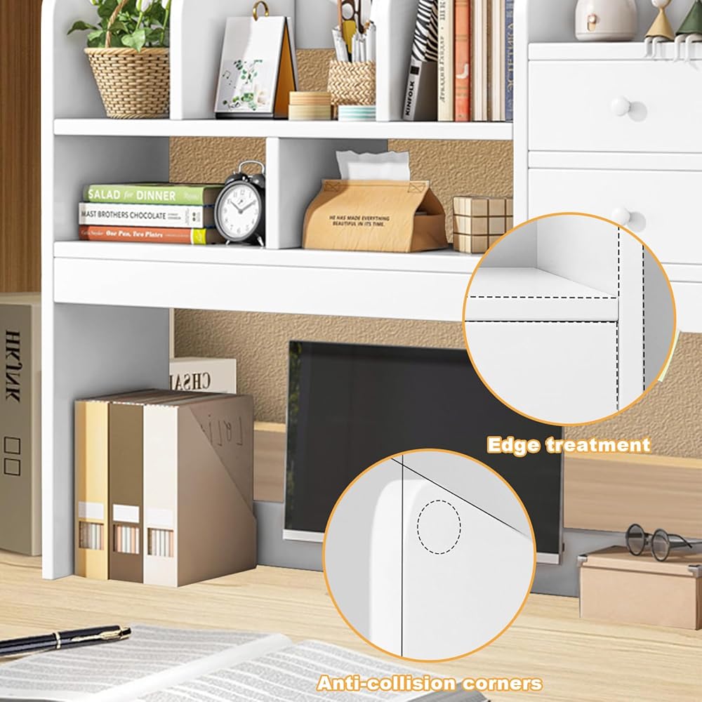 【Effortless To Assemble】To help you quickly finish the assembly of the dorm room desk hutch, you will get clear instructions, complete installation tools. Notice: Screw it tightly enhances the stability.If you have any installation problems or product problems, please feel free to contact us, we will help you solve them immediately and give you a satisfactory answer.