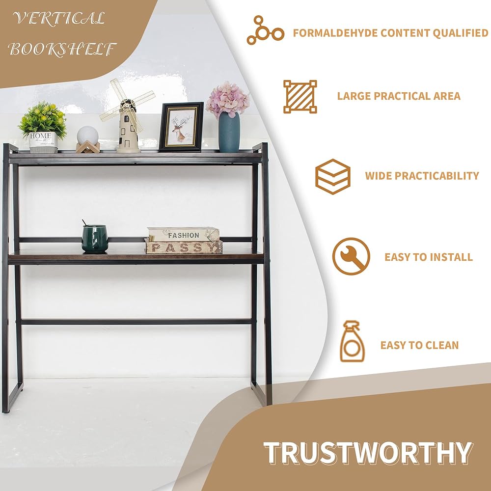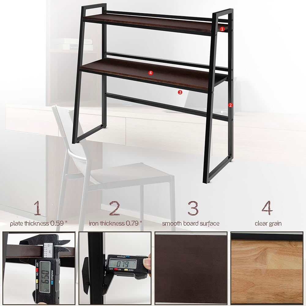 【Vintage Appearance Desk Hutch 】Rustic and aesthetic wood grain that fits perfectly with the vintage color. Simple and elegant dark brown, adding a vintage rustic feel to your home and can be matched well with most decor style.