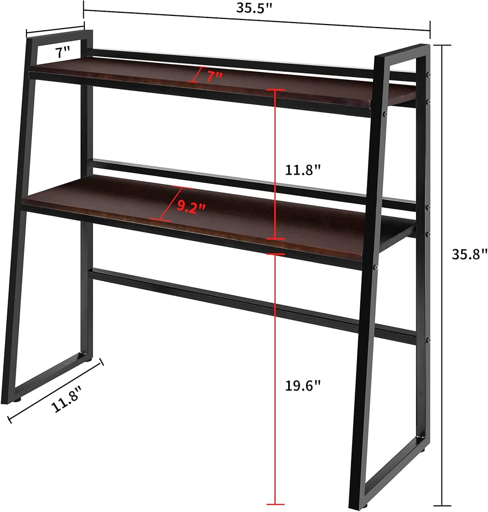【Multifunctional Desktop Shelf】Dimension: L 29.5'' X W 11.8'' X H 35.8'' ( L 75 X W 30 X H 91 CM ). This storage shelf is perfect to be a desktop shelf on tabletop. In addition to that, it works greatly as a printer stand for organizing books, documents, printing accessories, small potted plants in home or office.