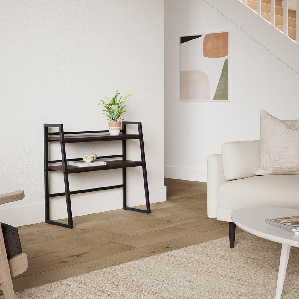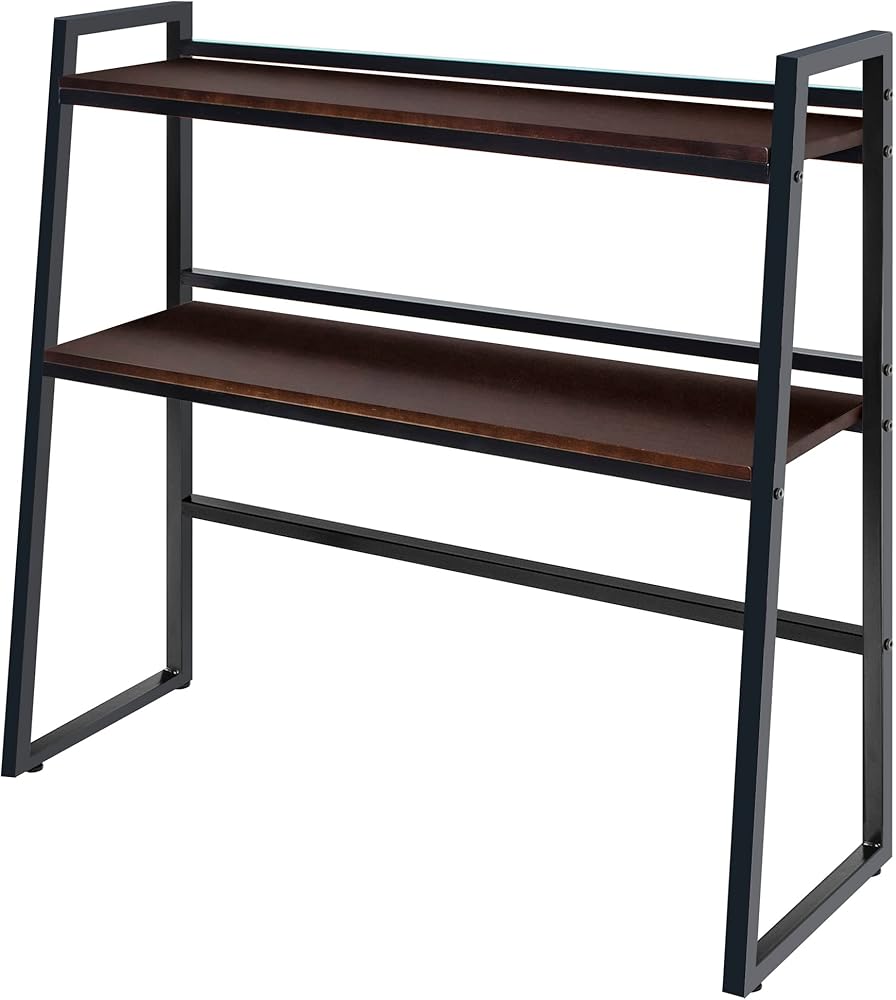 【Space Saving】Compact design, high stability, metal frame and wooden top plate, light weight and strong load-bearing, saving space. With smooth surface finish, if the storage shelf is stuck with dirt, can be removed by simply wiping, clean without trouble.