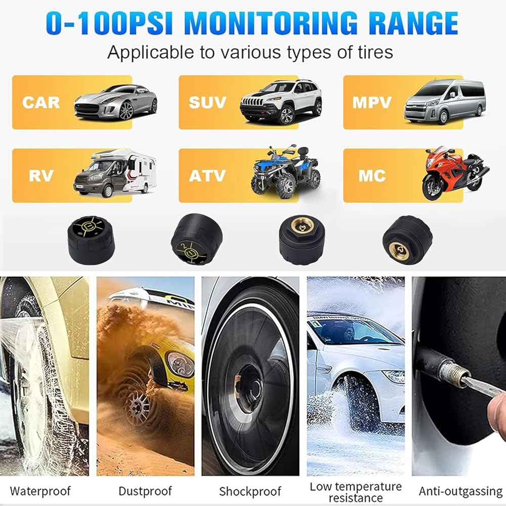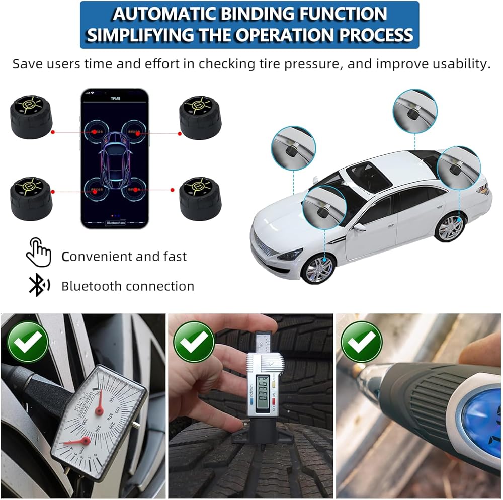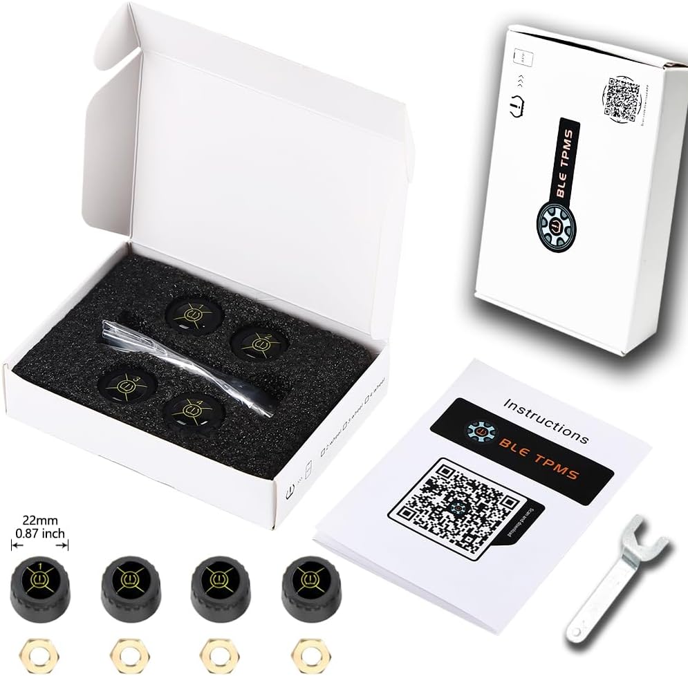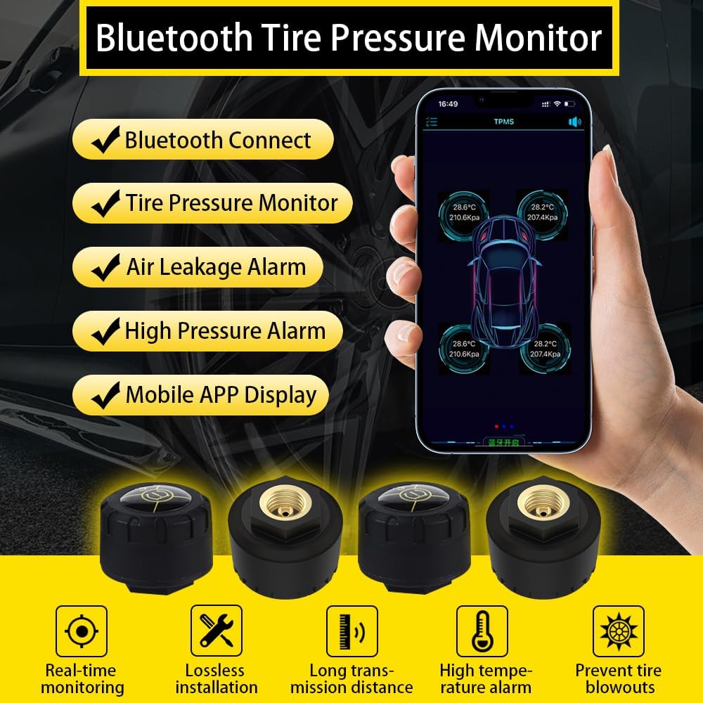 ArTea Wireless Tire Pressure Monitoring System TPMS Sensor Real-time Bluetooth Wireless Temperature Tire Monitor for Cars,Bikes,Motors,Support iOS&Android,4 External Sensors TPMS Sensor Kit(2024 New)
