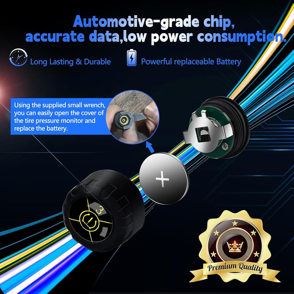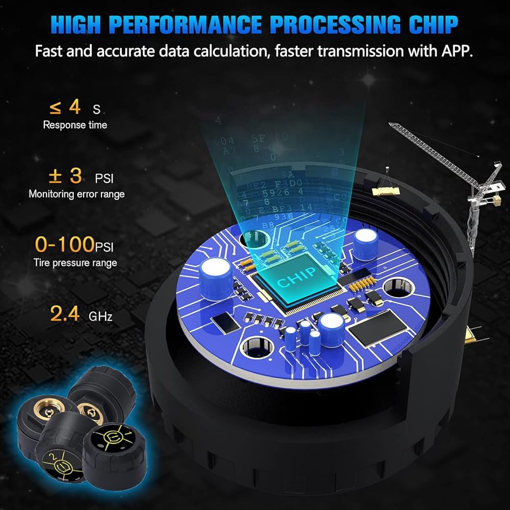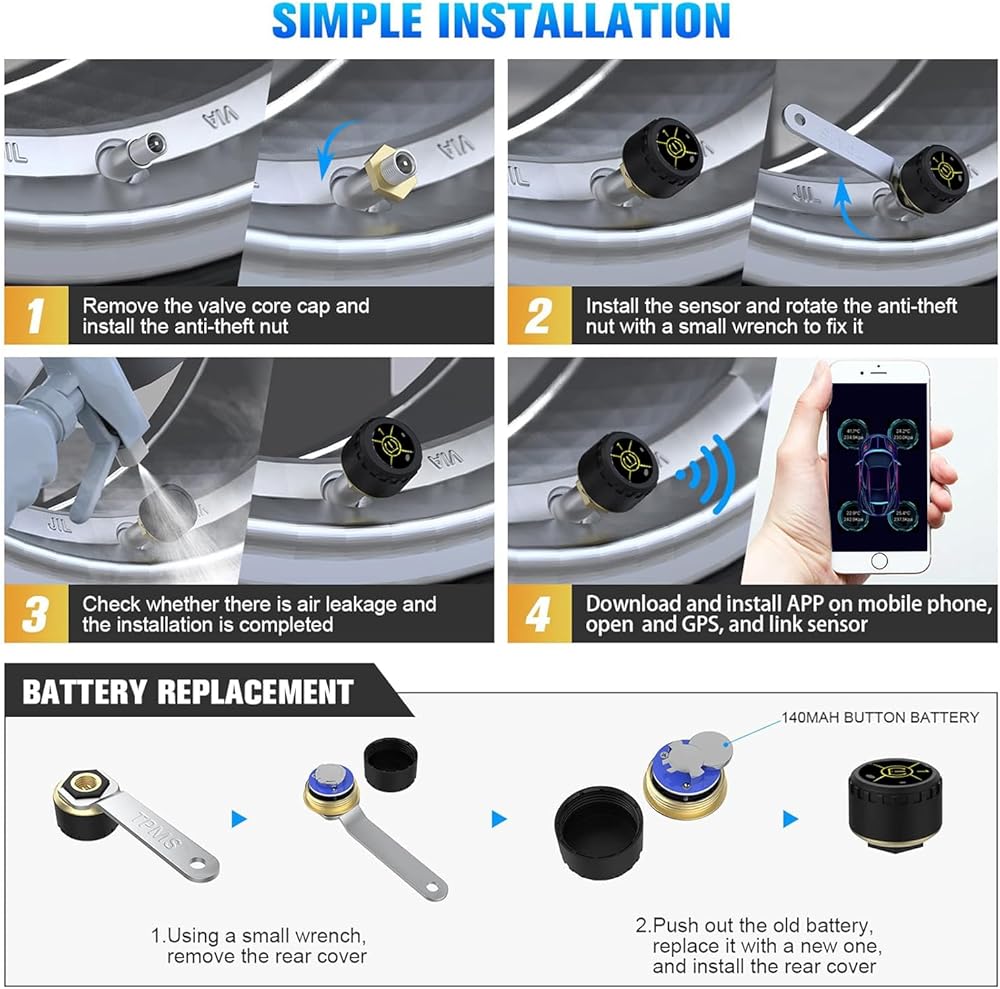 ArTea Wireless Tire Pressure Monitoring System TPMS Sensor Real-time Bluetooth Wireless Temperature Tire Monitor for Cars,Bikes,Motors,Support iOS&Android,4 External Sensors TPMS Sensor Kit(2024 New)