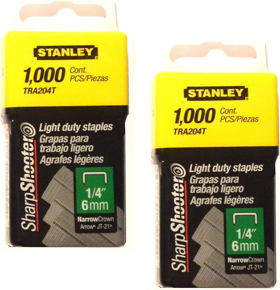 Stanley Tra204T 1/4 Inch Light Duty Narrow Crown Staples, Pack of 1000 (2 pack)