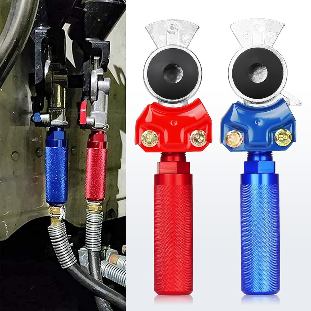 Glad Hand Handles, Air Glad Hand for Semi Trucks and Trailers with Extension Handles, Tractor Glad Hand Grips with Seals for Air Hose Freightliner, 2pcs Red + 2pcs Blue
