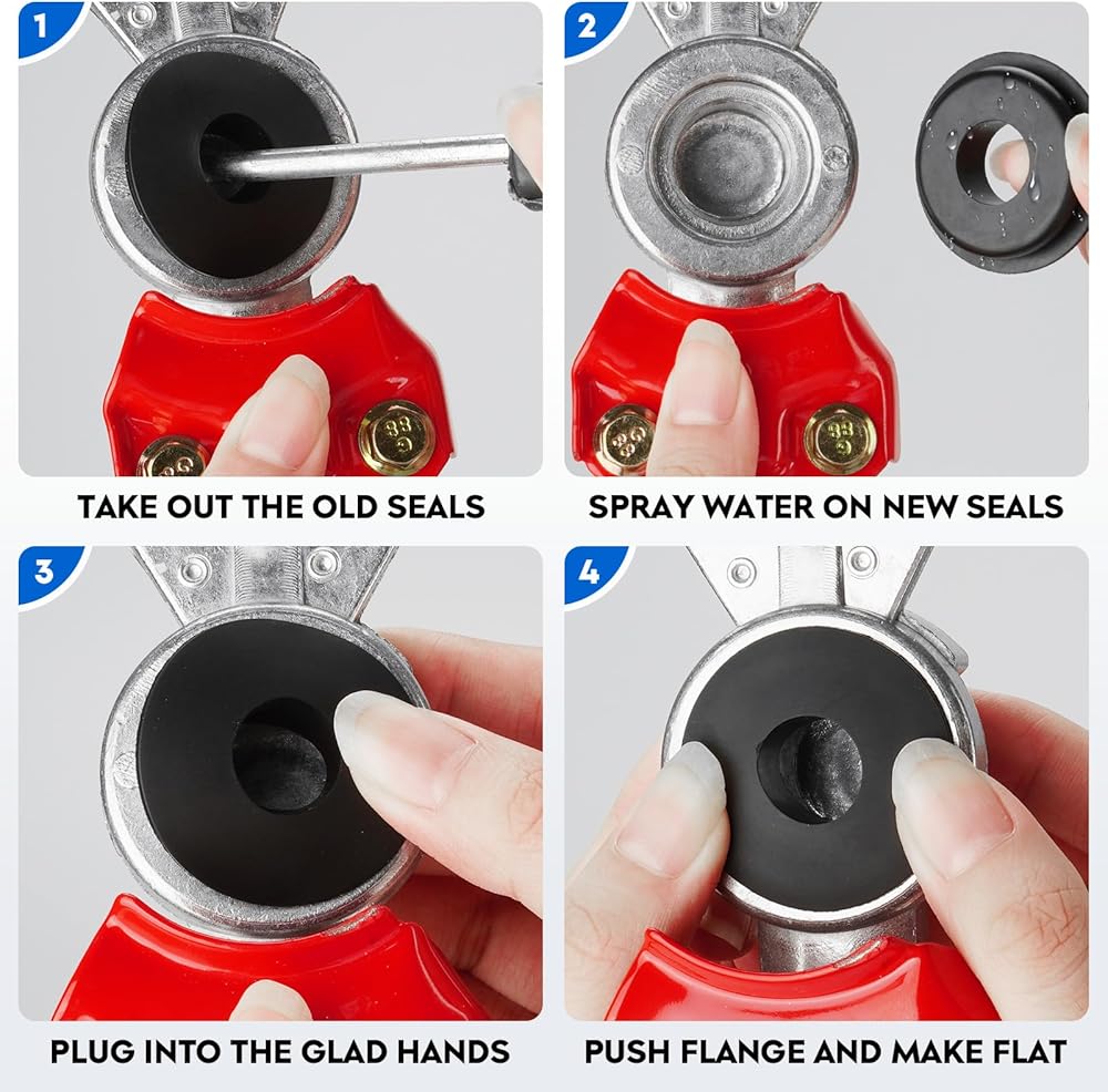 【High Seals】The glad hand handles conforms to the principle of ergonomics and is more labor-saving. Seals are made of high-quality rubber, strong air tightness, air leakage prevention. Gladhands kit is color coded red & blue for easy identification.