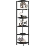 6 Tier Corner Shelf 63.1" Tall Corner Shelves stand Ladder shelf metal Standing Bookshelf Organizer Display Rack Bookcase Plant Stand Industrial for Living Room Bedroom Black Wood grain CS-001B3