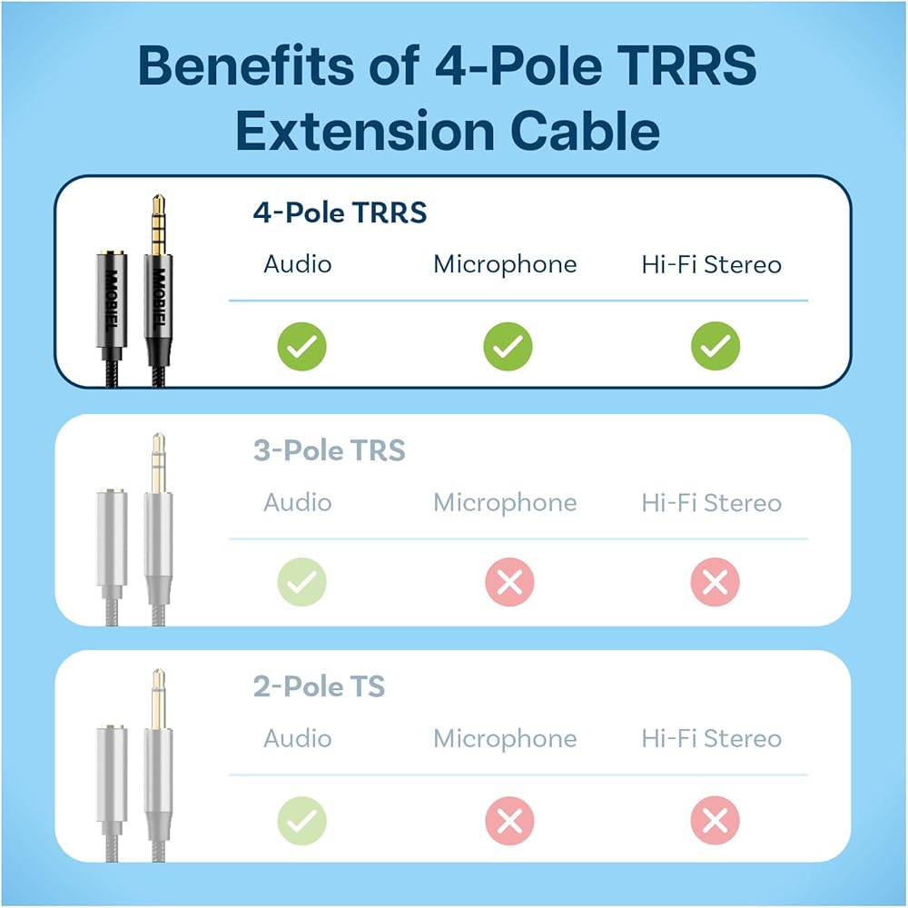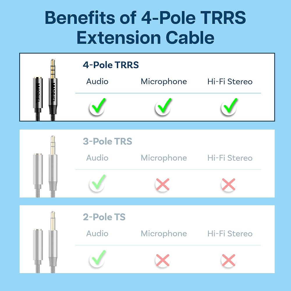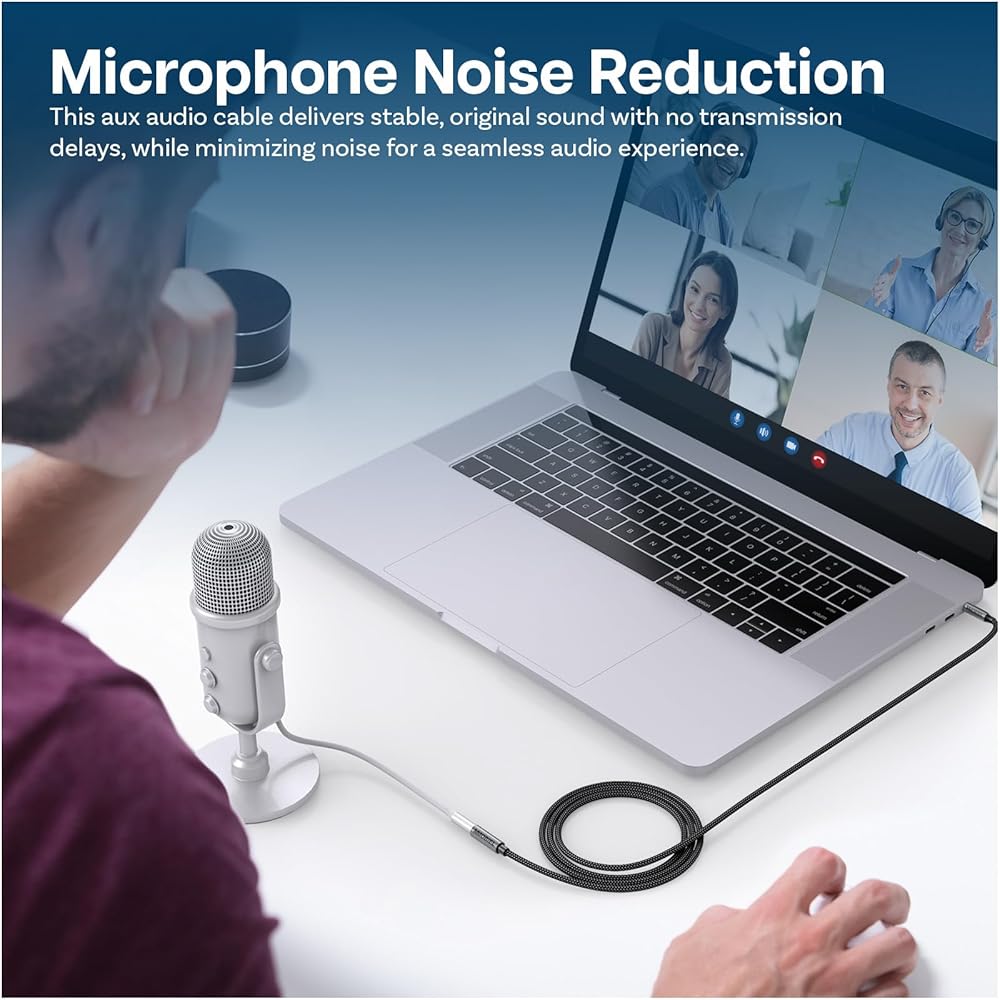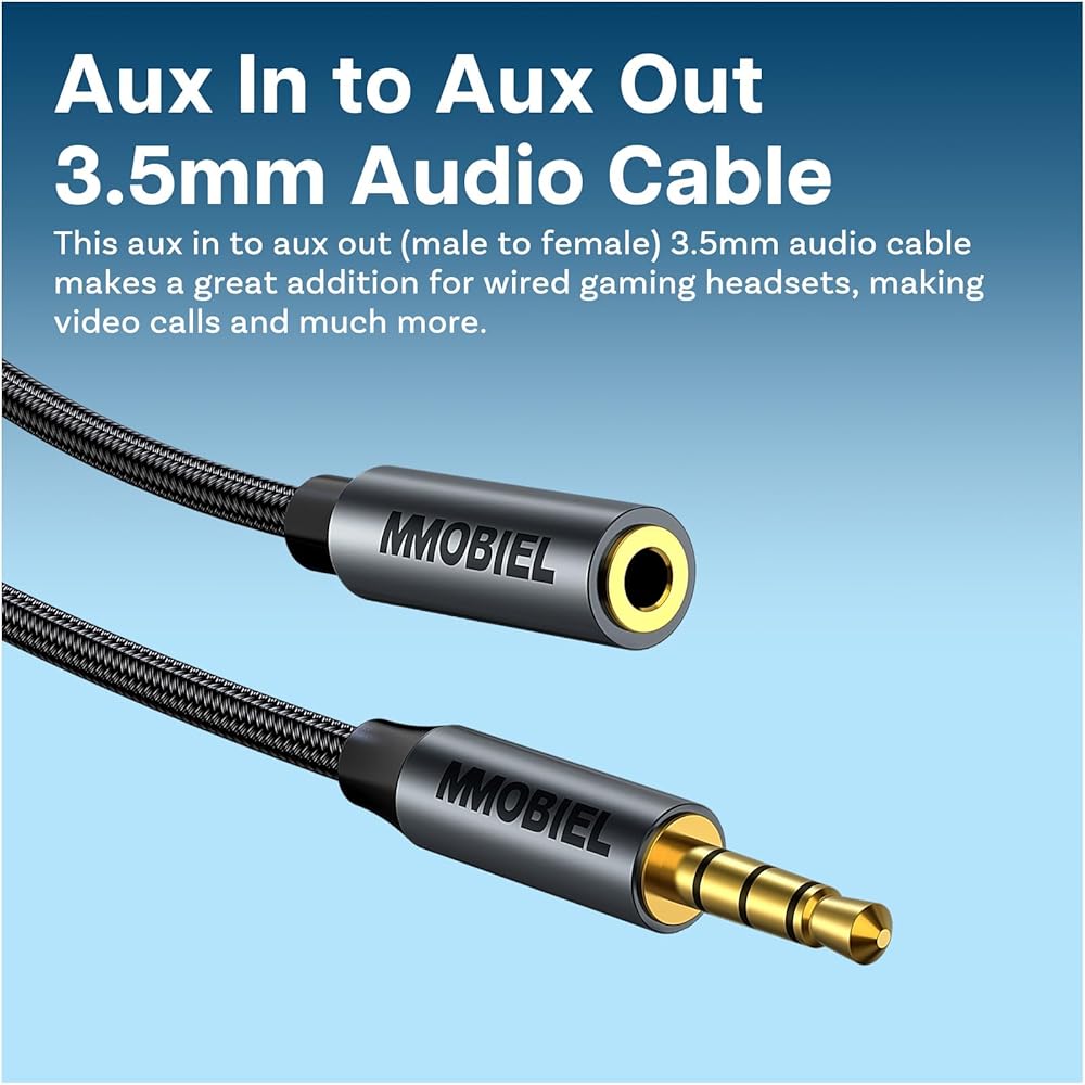 Want to connect: your headphones to a phone, a laptop to a speaker or a phone to a car stereo system? Then you need this 3.3 foot long auxiliary cord 3.5mm to 3.5mm! The aux in to aux out (male to male) cable features a dual 4-pole TRRS jack and supports both an audio and microphone function. This 3.5mm audio cable makes a great addition for wired gaming headsets, making video calls, connect music to a speaker with your laptop and much more.