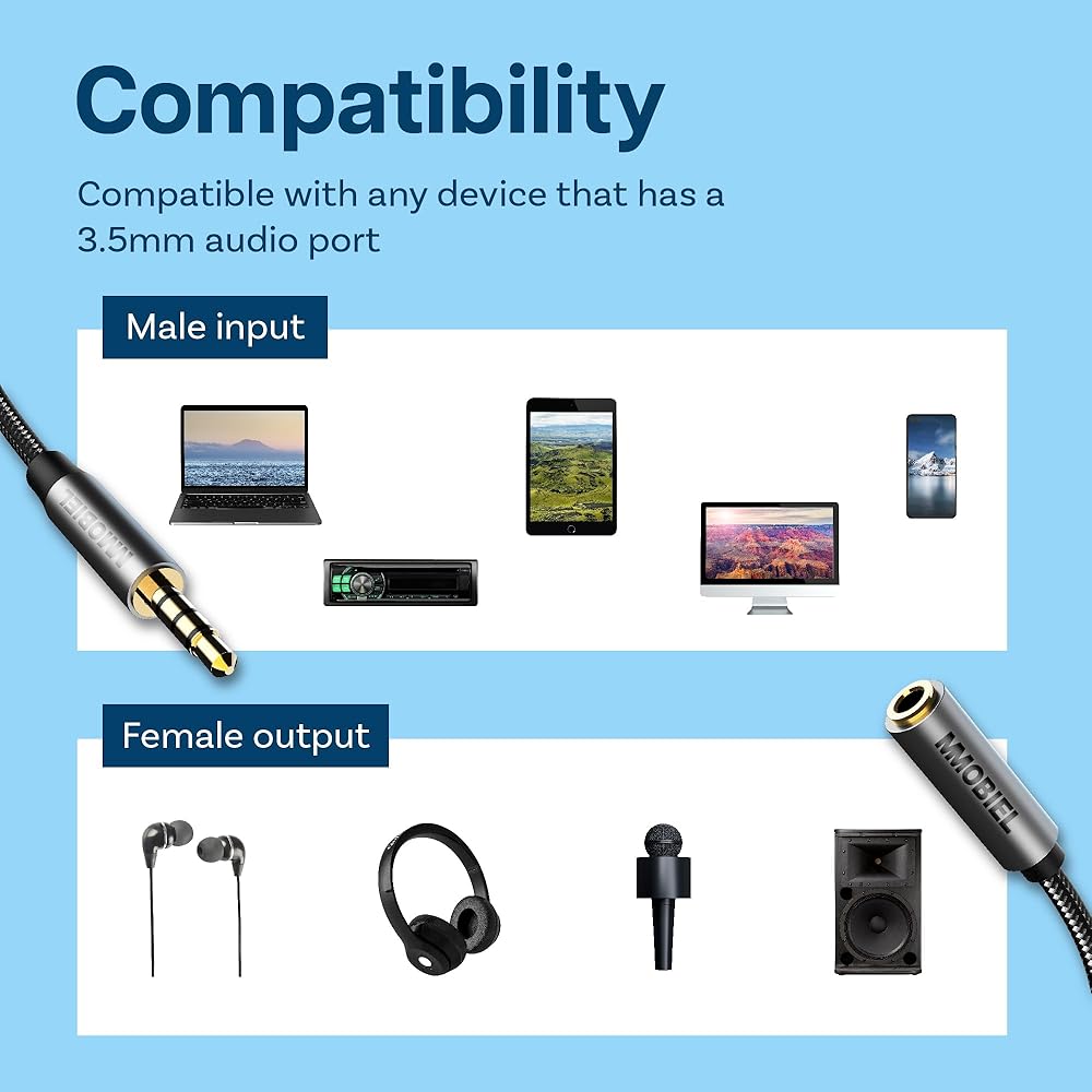 The 3.5mm audio cable allows you to connect any 3.5mm jack microphones, earphones, headphones, speaker or any other device with 3.5mm audio jack port. Making it suitable for a wide range of devices. It is compatible with standard auxiliary ports like car radio, TV, amplifier, soundbox etc. The aux to aux cable is made of aluminum, has gold-plated connectors and the 3.3 foot long cable is wrapped in TPE. This protective braiding has extraordinary tensile strength and resistance to breakage making the cable more resistant to bending, knots and wear. As a result, the aux to aux cable will last much longer, even with heavy use.