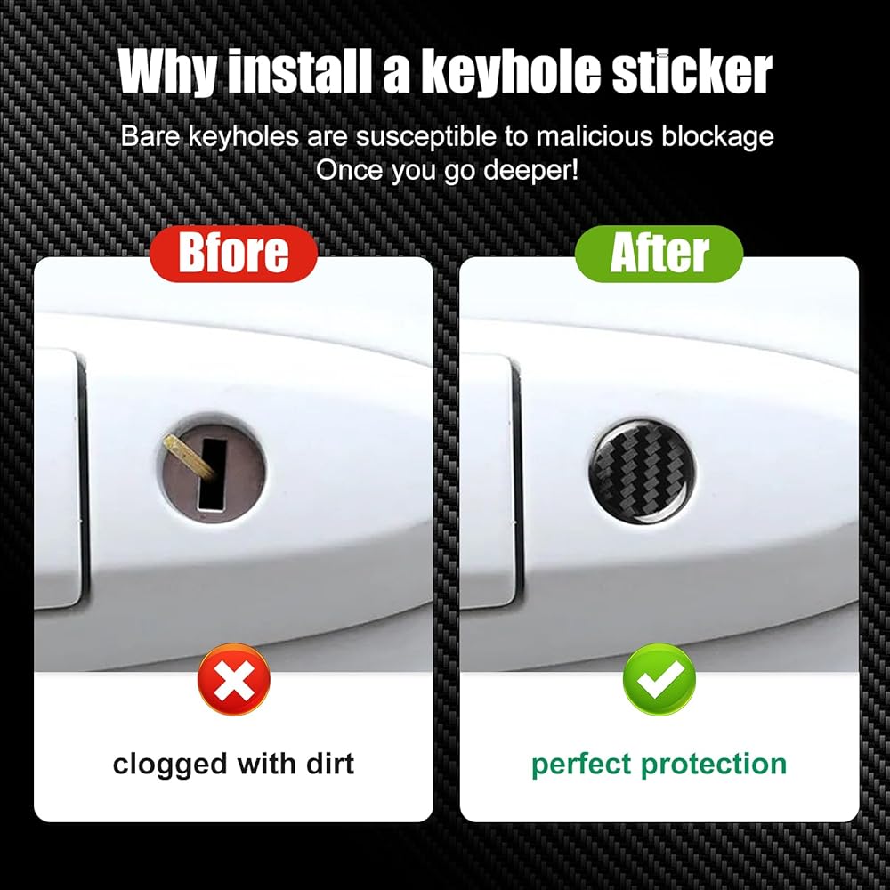 Style Upgrade: Enhance the aesthetics of your vehicle with our sleek, stylish car lockhole sticker. It serves as both a protector and a fashionable addition to your car door, upgrading its appearance effortlessly.