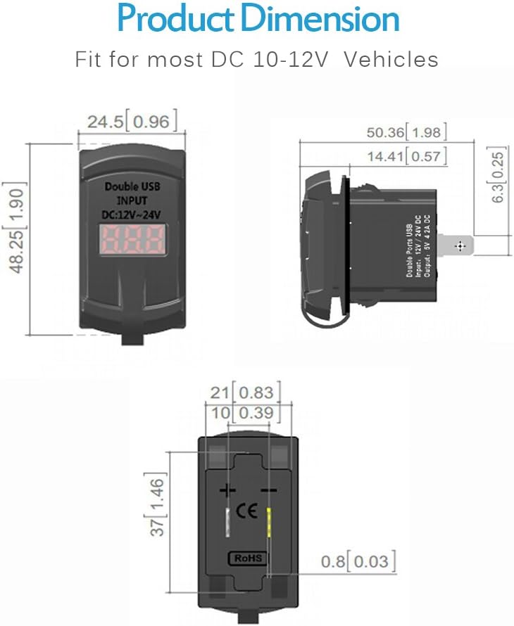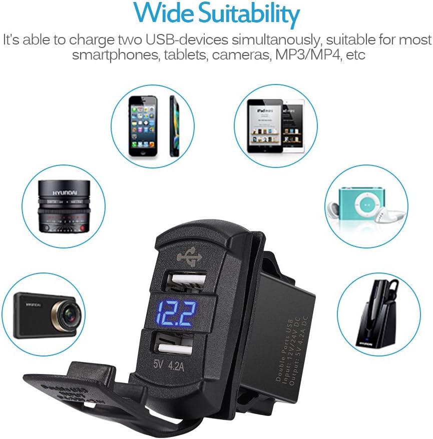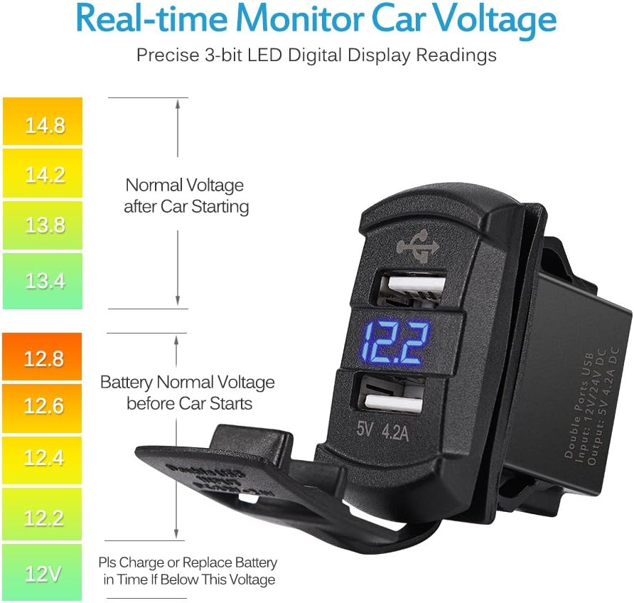 MICTUNING Switch Style USB car charger with Digial Voltmeter is the best choice for charging your Mobile devices and battary voltage monitor!