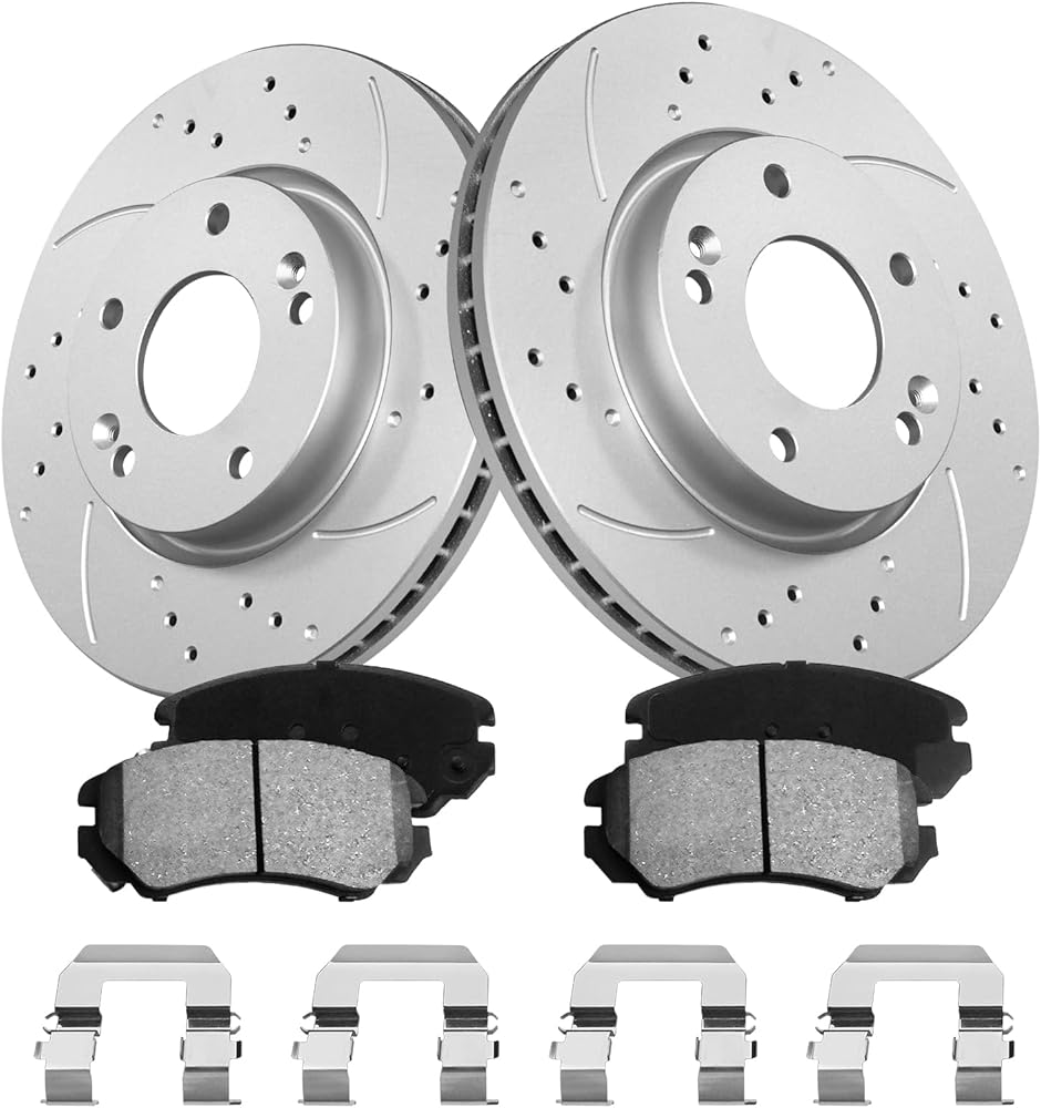 Front Brake Pads and Rotors Kit Compatible with Select Kia and Hyundai Models, Sportage/Sonata 05-10, Optima 06-10,Tucson, Soul, Tiburon,Geomet Coated Drilled Slotted Rotors 11 inch(280mm)