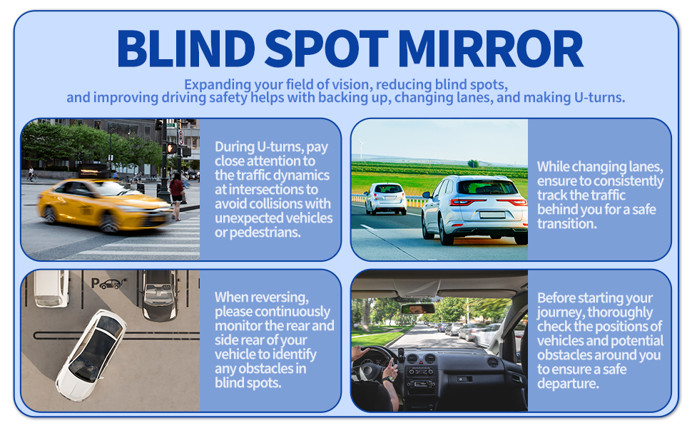 Blind Spot Safety: Upgrade with our 2 Pack Blind Spot Mirrors. Designed for Car SUVs, these mirrors expand vision, ensuring safer lane changes and reversing.