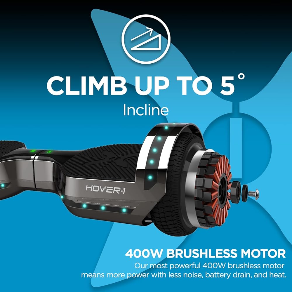 Hover-1 Chrome Electric Self Balancing Scooter with 6MPH Top Speed, 6 Mile Range, 4.5HR Full-Charge, Built-In Bluetooth Speaker, Rider Modes: Beginner to Expert