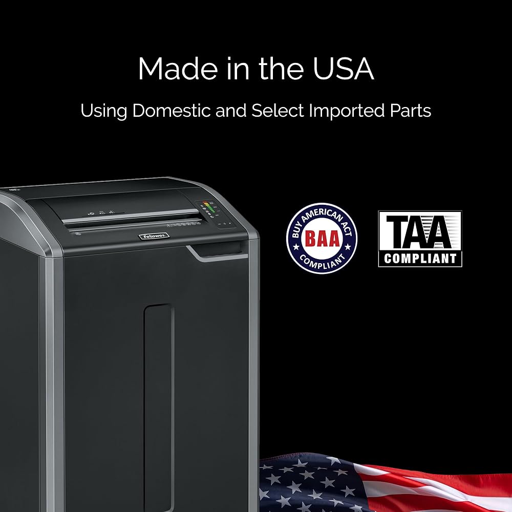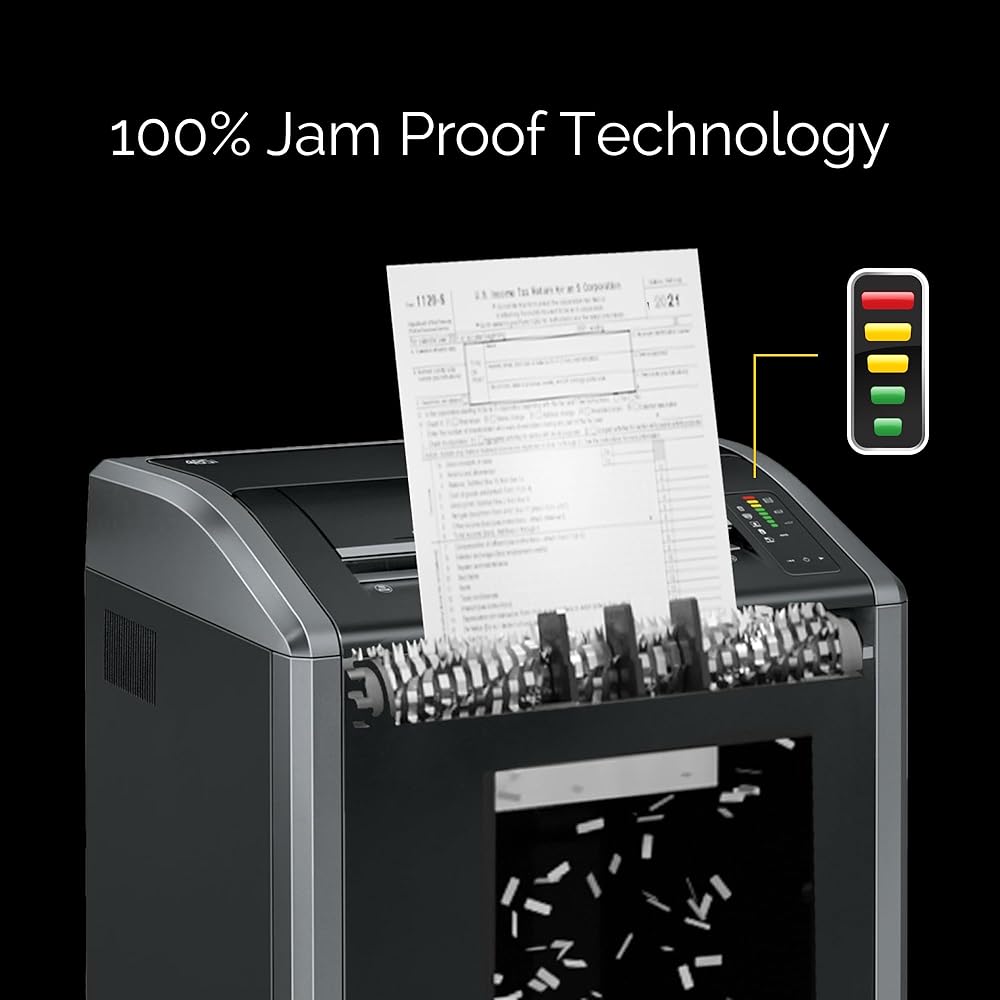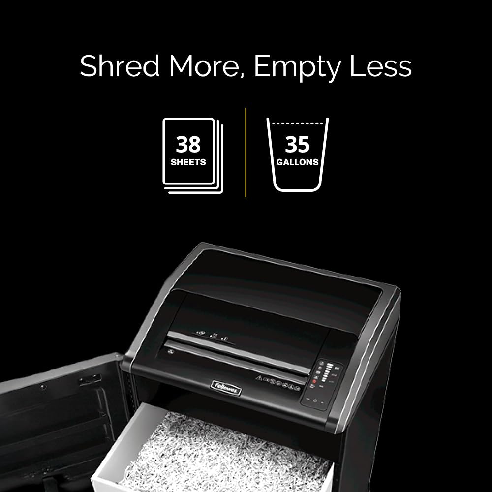 The Fellowes Powershred 225Mi Micro-Cut Shredder can shred up to 14 sheets of paper per pass into 2513 (5/64” x 15/32” Security Level P-5) micro-cut particles providing ultimate protection of confidential documents. This machine also safely shreds CDs/DVDs, credit cards, staples, paper clips and junk mail. Achieve hassle-free shredding with all of the features the 225Mi has to offer. Get three levels of advanced jam prevention with Fellowes 100% Jam Proof System which eliminates paper jams, powers through tough jobs and maximizes productivity. To protect more than your identity, the patented SafeSense Technology is designed with an electronic safety sensor that surrounds the paper entry and automatically disables the shredder when hands touch the paper opening. Also, the 225Mi's SilentShred Technology and Energy Savings System allow this machine to integrate easily to any environment. With the ability to shred continuously, the 225Mi is ideal for 3-5 users and includes a high volume 16-gallon removable basket. Backed by a worry-free 2-year product and service warranty plus a 7-year cutter warranty. 30.75” H x 17.75” W x 17.1” D