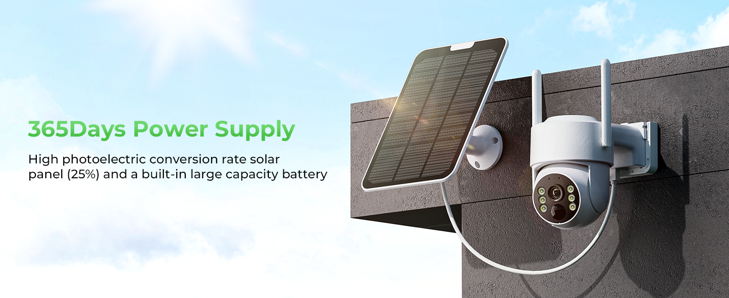 🌞【100% WIRELESS + SOLAR PANEL POWERED】 The wireless solar security camera outdoor is equipped high-capacity rechargeable battery and comes with solar panel to supply power, which can operate for 365 days continuously without charge. Totally free of wires/network cables, and flexible to install solar cameras anywhere you need. The built-in 5dbi antenna offers the wireless solar outdoor camera a stronger and more stable wireless connection to the NVR monitor.