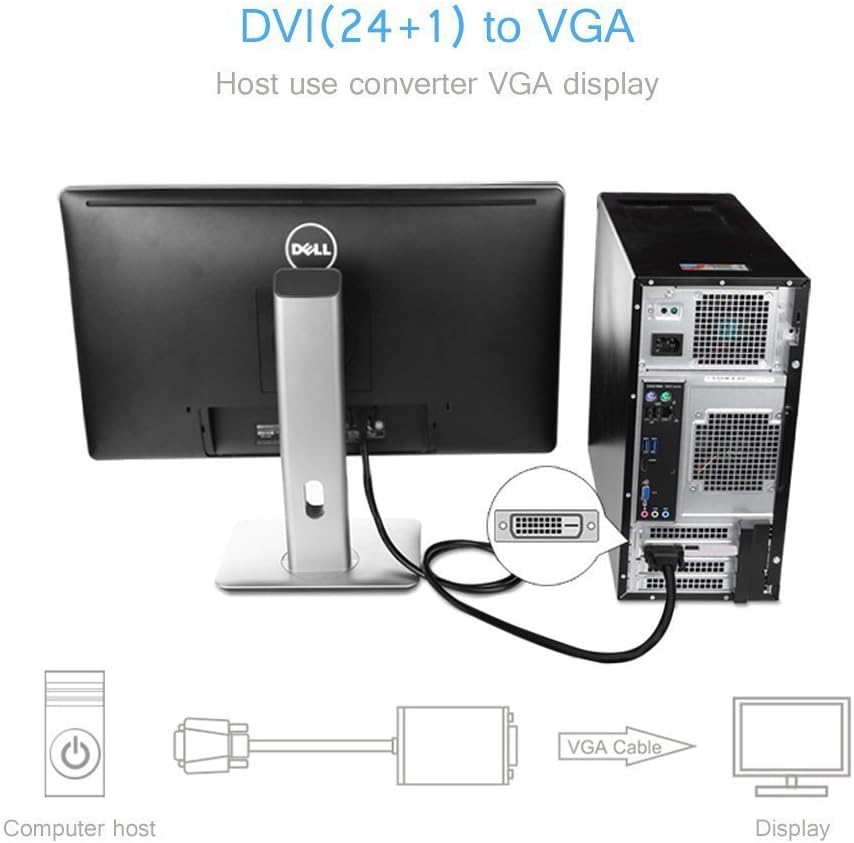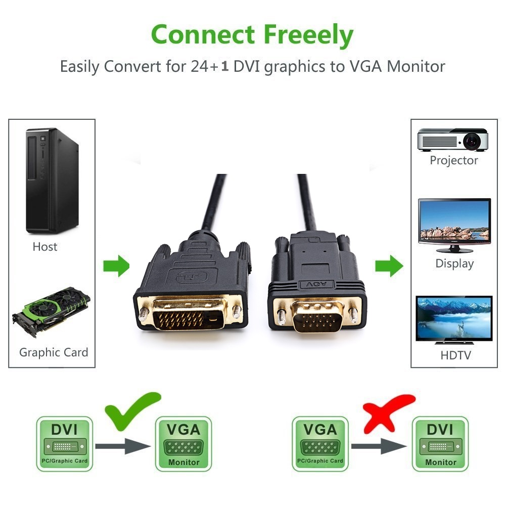 HIGH PERFORMANCE Adapter -6Ft DVI-D to VGA Male/Male converter Cable lets you connect a digital DVI output from your desktop or laptop computer onto a VGA monitor or projector.It can not connect from VGA computer to your DVI Monitor.