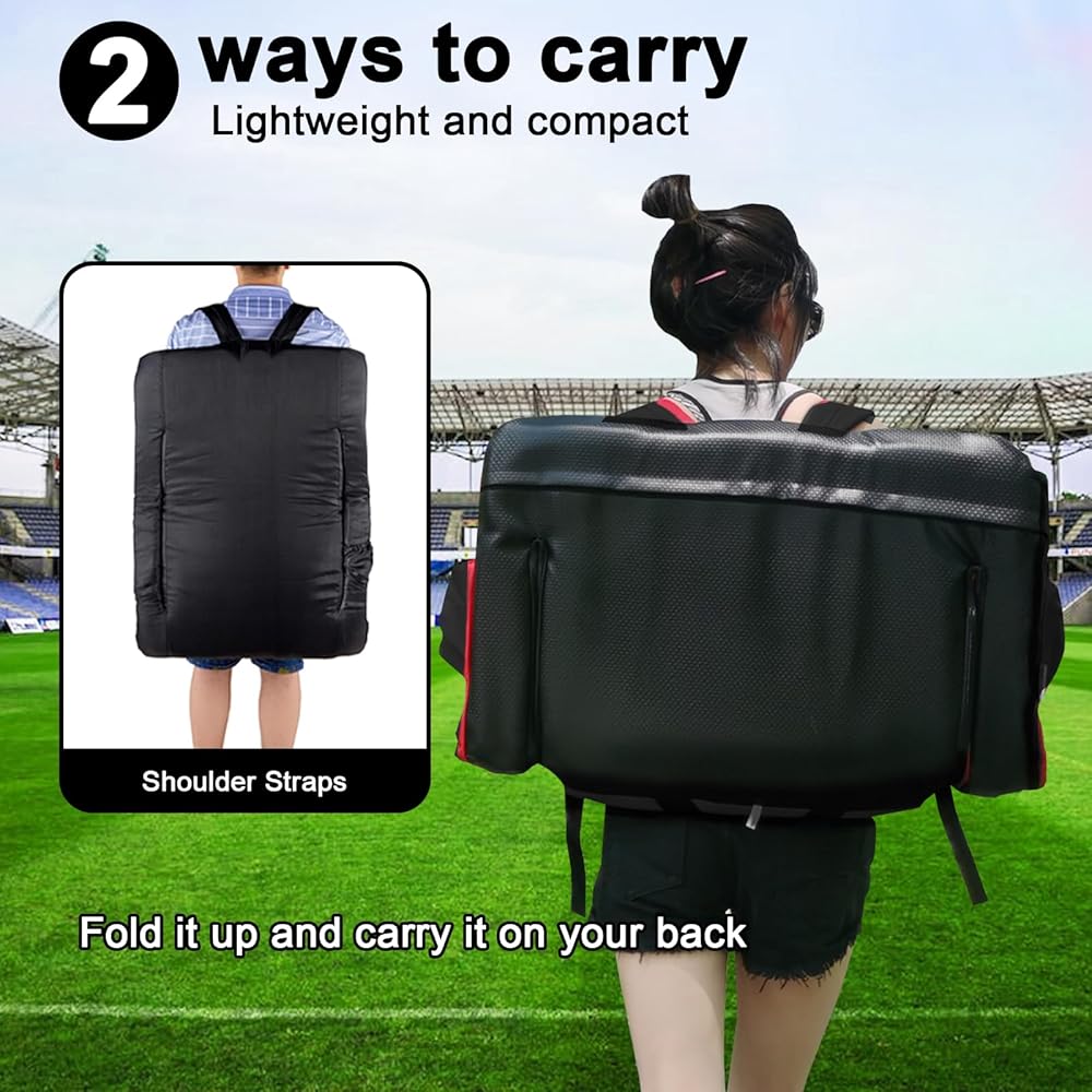 FREE YOUR HANDS TO CARRY & 2 WIDTHS TO CHOOSE - This portable stadium seat for bleacher with back support contains 2 shoulder straps which is easy to carry without your hands, you can take other useful things by your hands. An extra carry bag is also included within the package, and you can put more things into the bag. The width of the seat area is 18 inches when the armrests are up and 24 inches when the armrests are down.