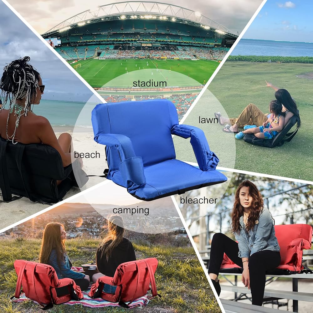 ADJUSTABLE BACK FITS YOUR CUSTOMIZED NEED - This portable stadium seat features 6 adjustable positions. You can adjust angle between seat and back and choose the most comfortable type to fit your personal need, like reading, gaming or take a rest. This stadium chair for bench is lightweight.The weight of this bleacher chair is about 8.6 lbs, even your children can carry it easily. It is a good idea to buy this chair for each one in your family.