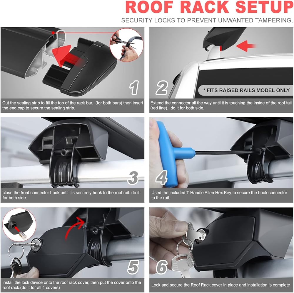PACKAGE INCLUDES - 1 X Pair of Cross Bars, Set of Mounting Brackets, 1 X Allen Wrench, 1 X Set of Keys; Professional Installation is Highly Recommended