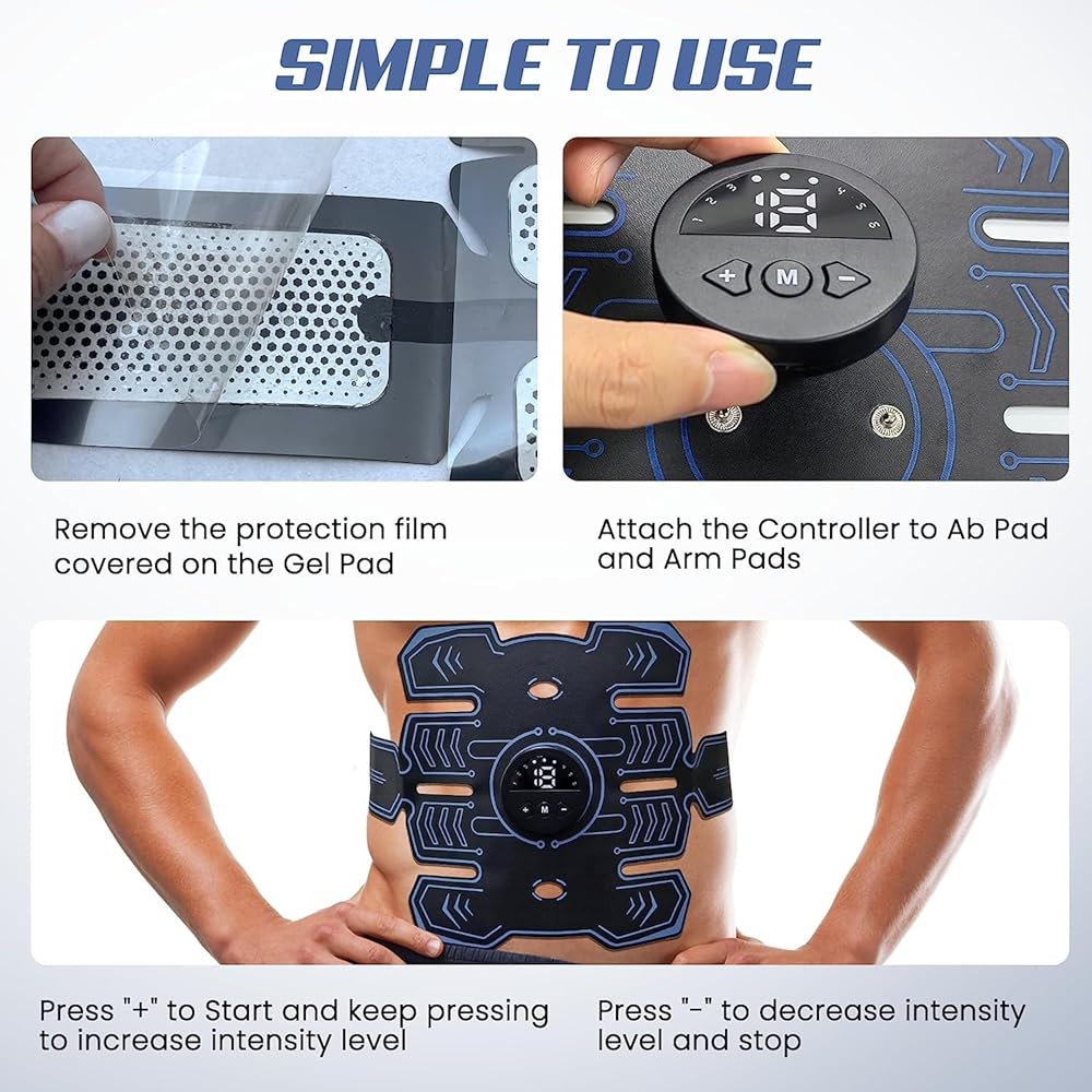 【Various Modes & Multi-function】Enjoy the convenience and portability of this easy-to-use ab stimulator. Simply attach the device to your skin using the self-adhesive gel pads, choose from 6 modes and 10 intensity levels, and experience a hands-free workout anytime, anywhere. Whether at home, in the office, or on the go, this ab stimulator will help you achieve your fitness goals.