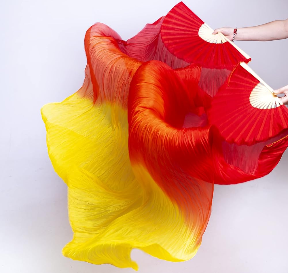 Package included: 1pair belly dance silk fan veil (1pc left hand+1pc right hand ).