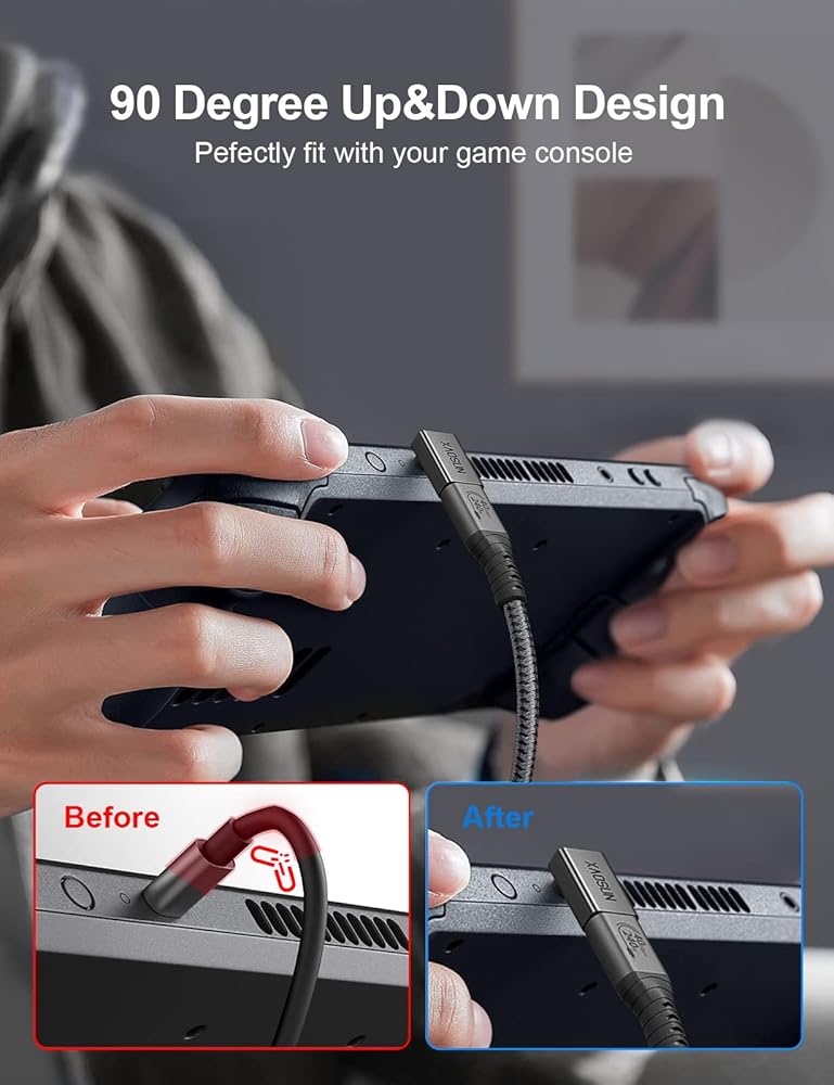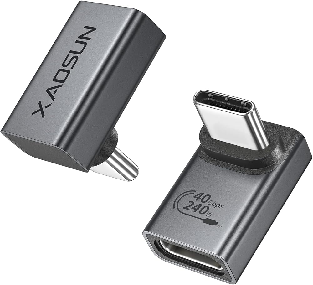 XAOSUN 90 Degree USB C Adapter, USB C to USB C Adapter Right Angle 240W 40Gbps, USB Type C Thunderblt 4 Connecter for MacBook, Phone, rog Ally, steam Deck, Switch,Tablet and More (2-Pack)