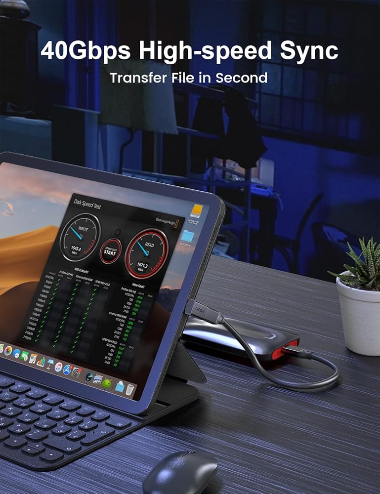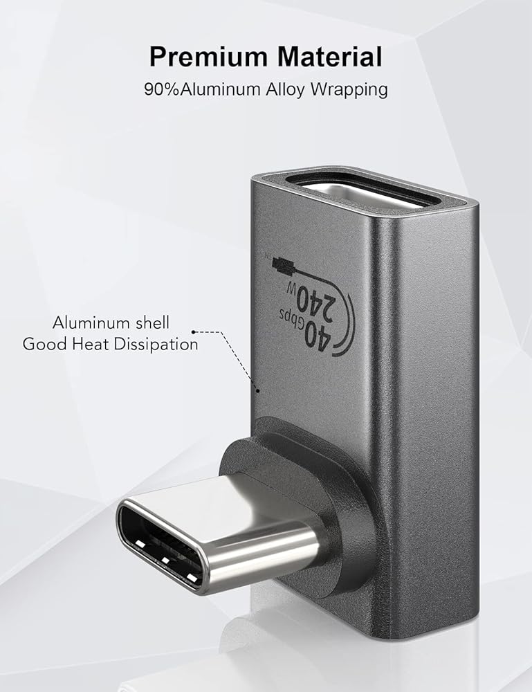 【Wide Compatibility】Angle USB-C to USB-C adapter compatible with USB4, Thunderbolt 4, Thunderbolt 3, such as MacBook Pro,HP Spectre Series, iPad, SSD. Backward compatible with USB3.2, USB3.1, USB2.0, such as Switch, Steam deck, Lenovo Yoga, Lenovo ThinkPad, Samsung Galaxy, Google Pixel, docks.