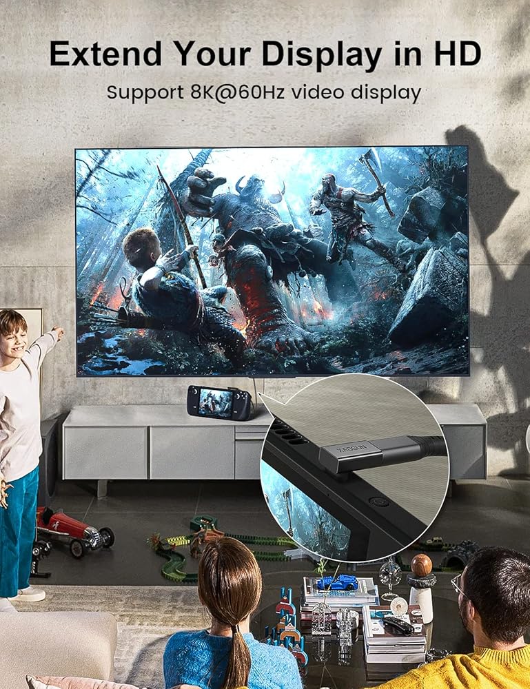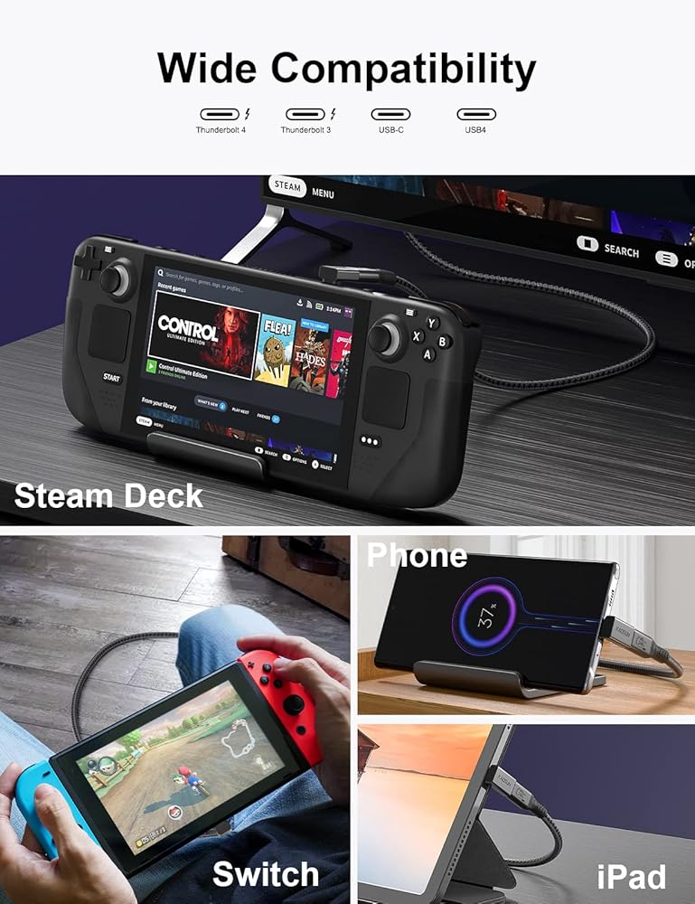 【40Gbps Data Transfer & 8K Video Output】USB C to USB C adapter adopts the USB4 standard, providing data transmission speeds up to 40 Gbps.Supports 8K display, providing clearer and smoother image quality. Compatible with steam deck, connect to dock, you will get better picture quality and game experience, and enjoy the high-quality game world.
